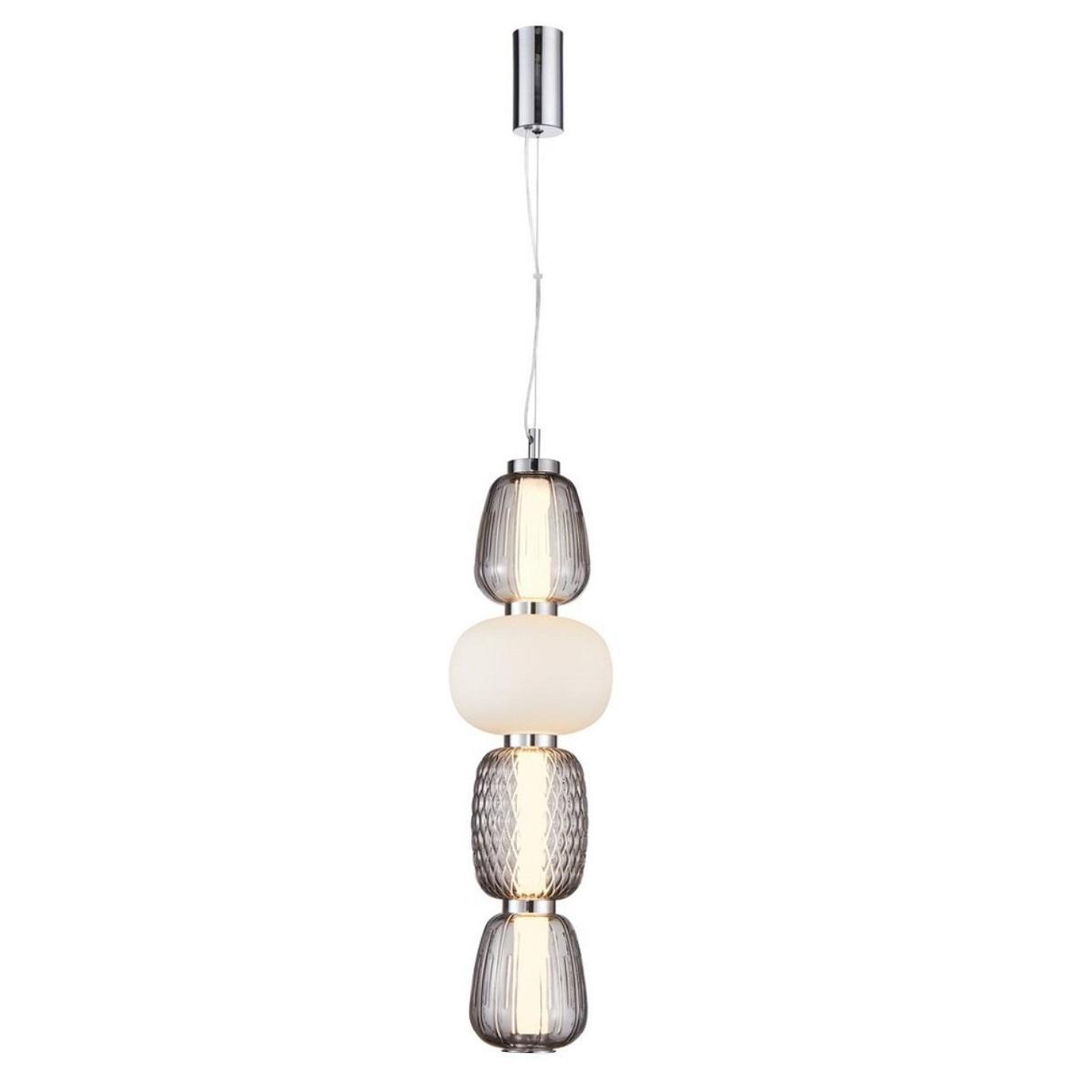 Подвесной светодиодный светильник Aployt Oliwcia APL.319.16.29 от Китайского бренда из коллекции Oliwcia предназначен для установки на потолок в спальни в стиле модерн. Cветильник в форме с металлической арматурой цвет хрома и дымчатого цвета плафонами из стекла предназначен для освещения м2.