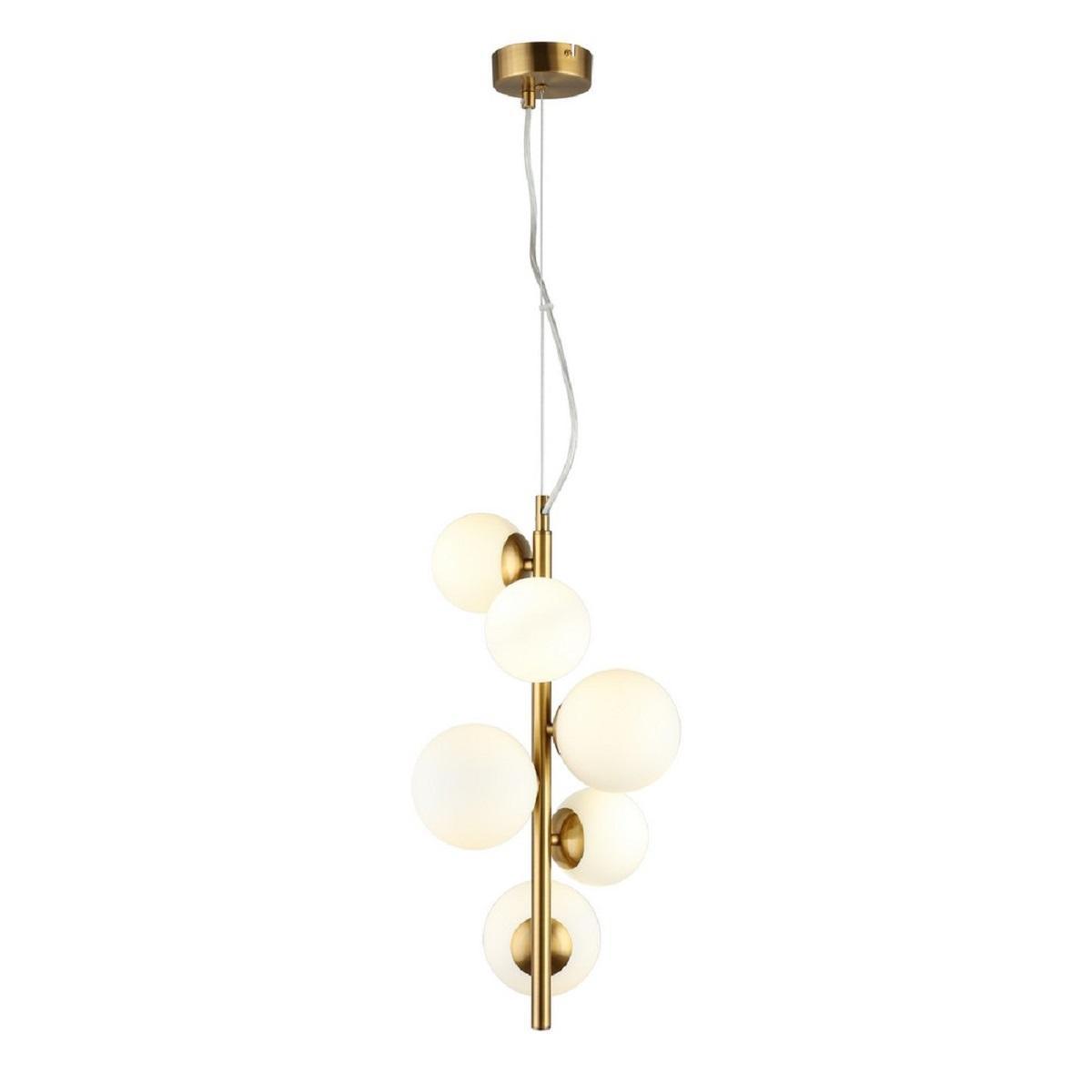 Подвесной светильник Aployt Letizia APL.314.06.06 от Китайского бренда из коллекции Letizia предназначен для установки на потолок в спальни в стиле модерн. Cветильник в форме с металлической арматурой цвета латуни и белого цвета плафонами из стекла предназначен для освещения 6 м2.