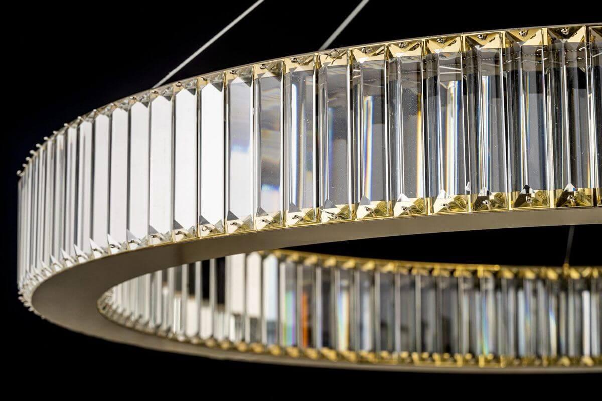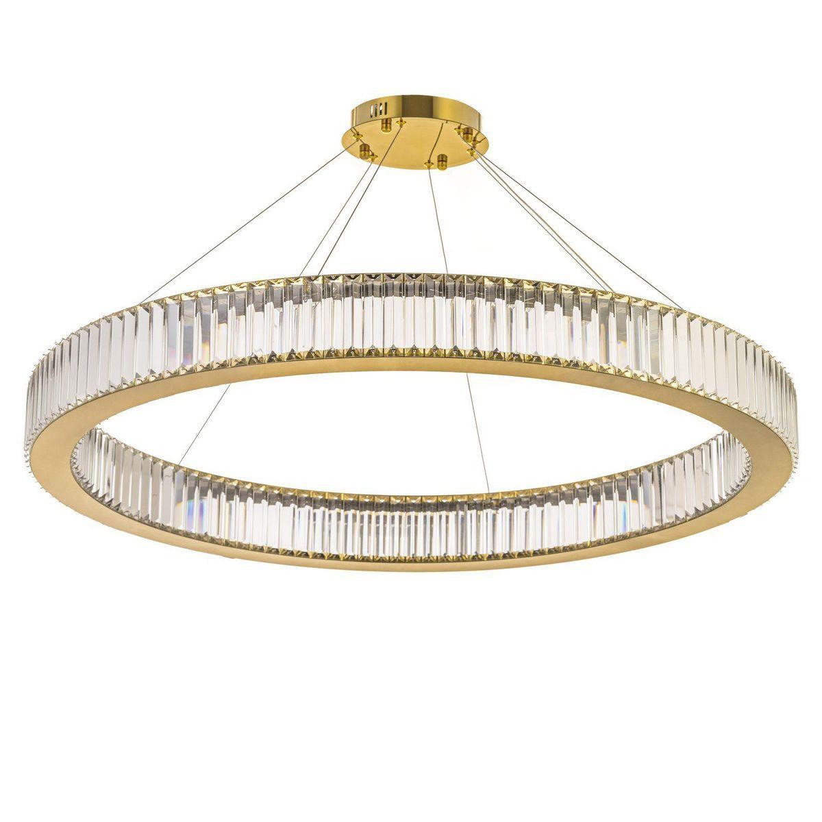 Подвесной светодиодный светильник Arti Lampadari Anzio L 1.5.100.100 G от Итальянского бренда из коллекции Anzio предназначен для установки на потолок в гостиной в стиле модерн. Cветильник в форме с металлической арматурой залотого цвета и прозрачного цвета плафонами из хрусталя предназначен для освещения м2.