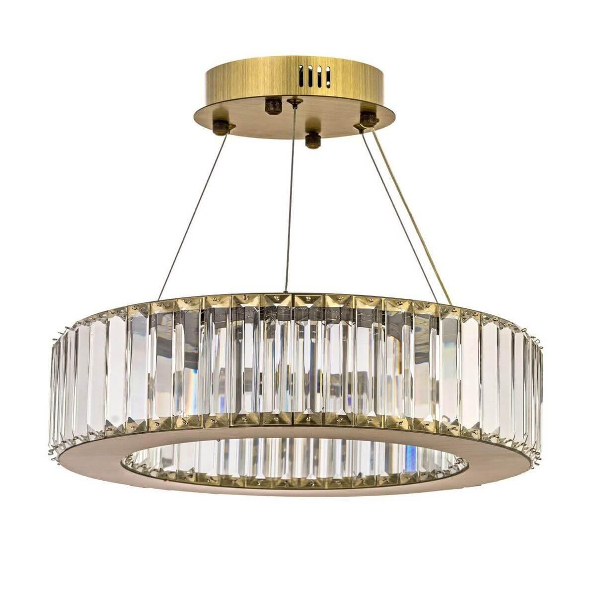 Подвесной светодиодный светильник Arti Lampadari Anzio L 1.5.40.100 G от Итальянского бренда из коллекции Anzio предназначен для установки на потолок в кухне в стиле модерн. Cветильник в форме с металлической арматурой залотого цвета и прозрачного цвета плафонами из хрусталя предназначен для освещения м2.