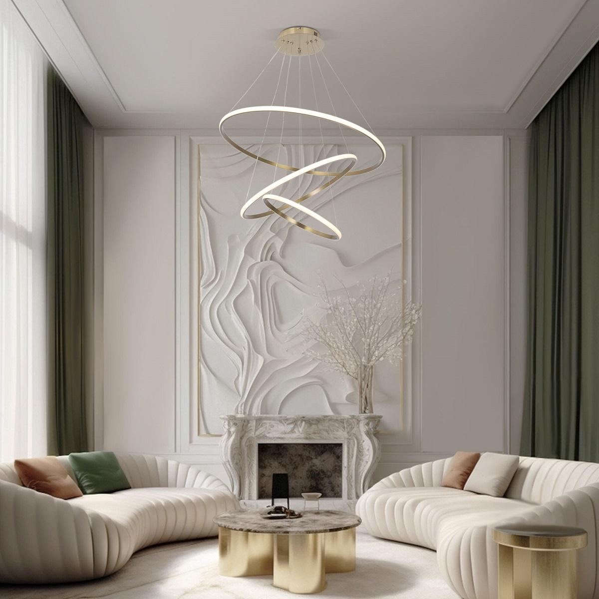 Подвесной светодиодный светильник Eurosvet Collars 90264/3 латунь от Китайского бренда из коллекции Collars предназначен для установки на потолок в гостиной в хай-тек стиле. Cветильник в форме с металлической арматурой цвета латуни и цвета латуни плафонами из металла предназначен для освещения 28 м2.