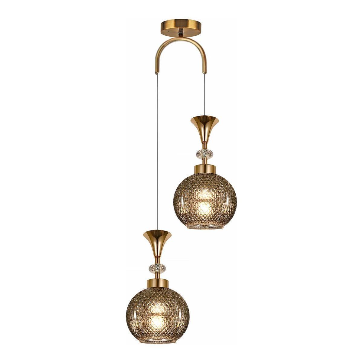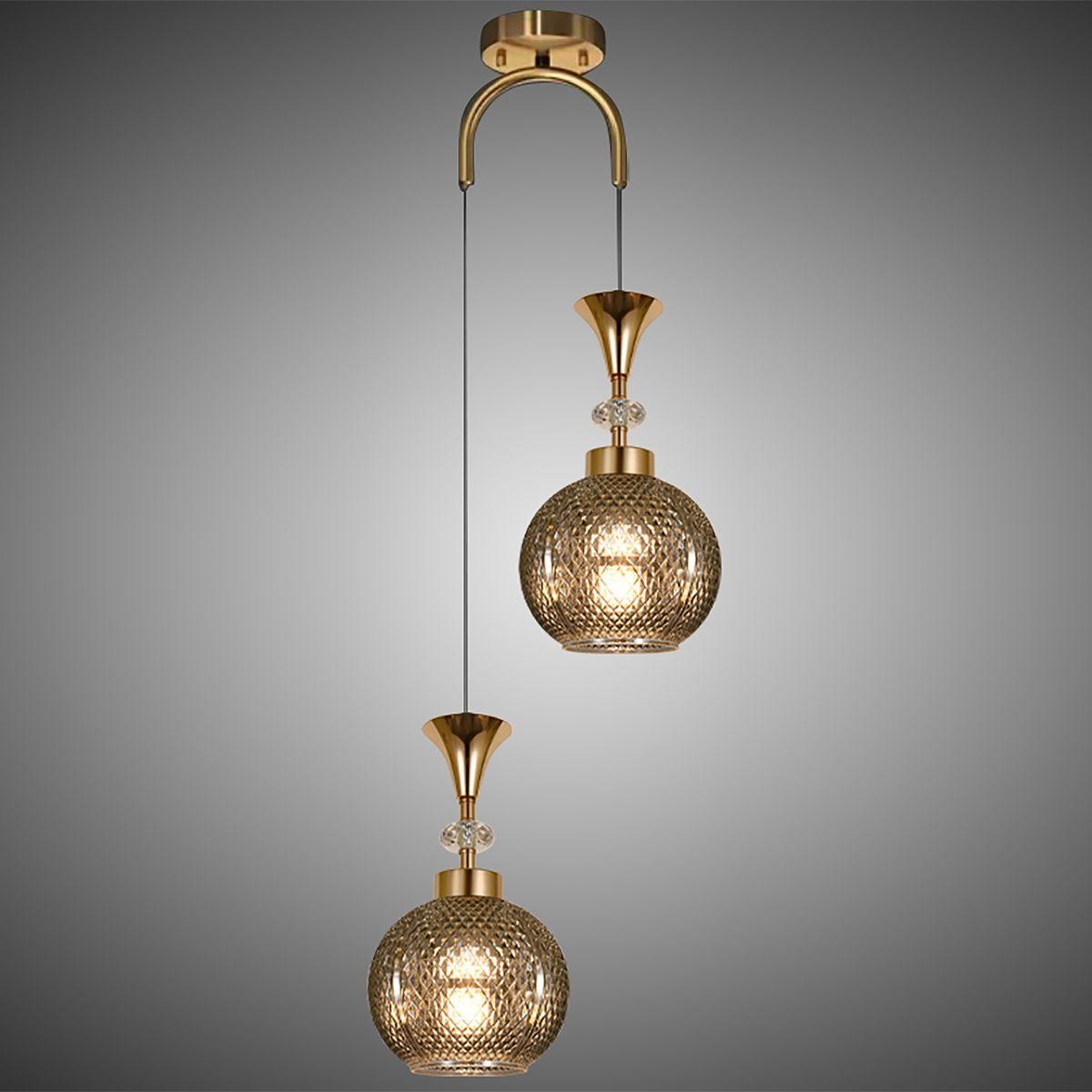 Подвесной светильник Reluce 02001-0.9-02 Smoke от Китайского бренда из коллекции 02001 предназначен для установки на потолок в спальни в ретро стиле. Cветильник в форме с металлической арматурой залотого цвета и дымчатого цвета плафонами из стекла предназначен для освещения 12 м2.