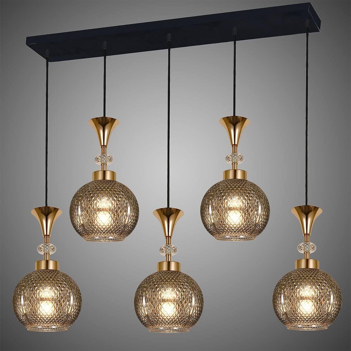 Подвесной светильник Reluce 02001-0.9-05L Smoke от Китайского бренда из коллекции 02001 предназначен для установки на потолок в кухне в ретро стиле. Cветильник в форме с металлической арматурой и дымчатого цвета плафонами из стекла предназначен для освещения 30 м2.