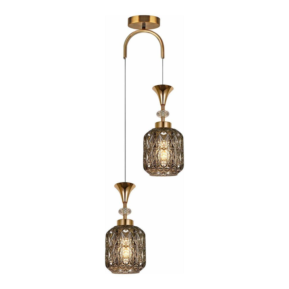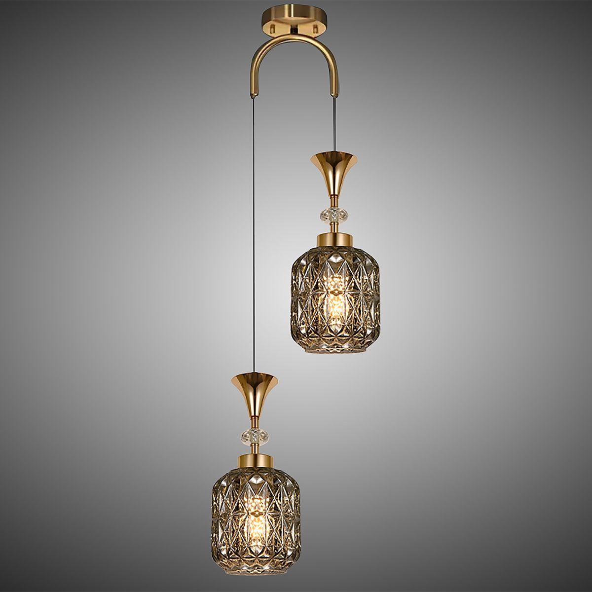 Подвесной светильник Reluce 02003-0.9-02 Smoke от Китайского бренда из коллекции 02003 предназначен для установки на потолок в спальни в ретро стиле. Cветильник в форме с металлической арматурой залотого цвета и дымчатого цвета плафонами из стекла предназначен для освещения 12 м2.