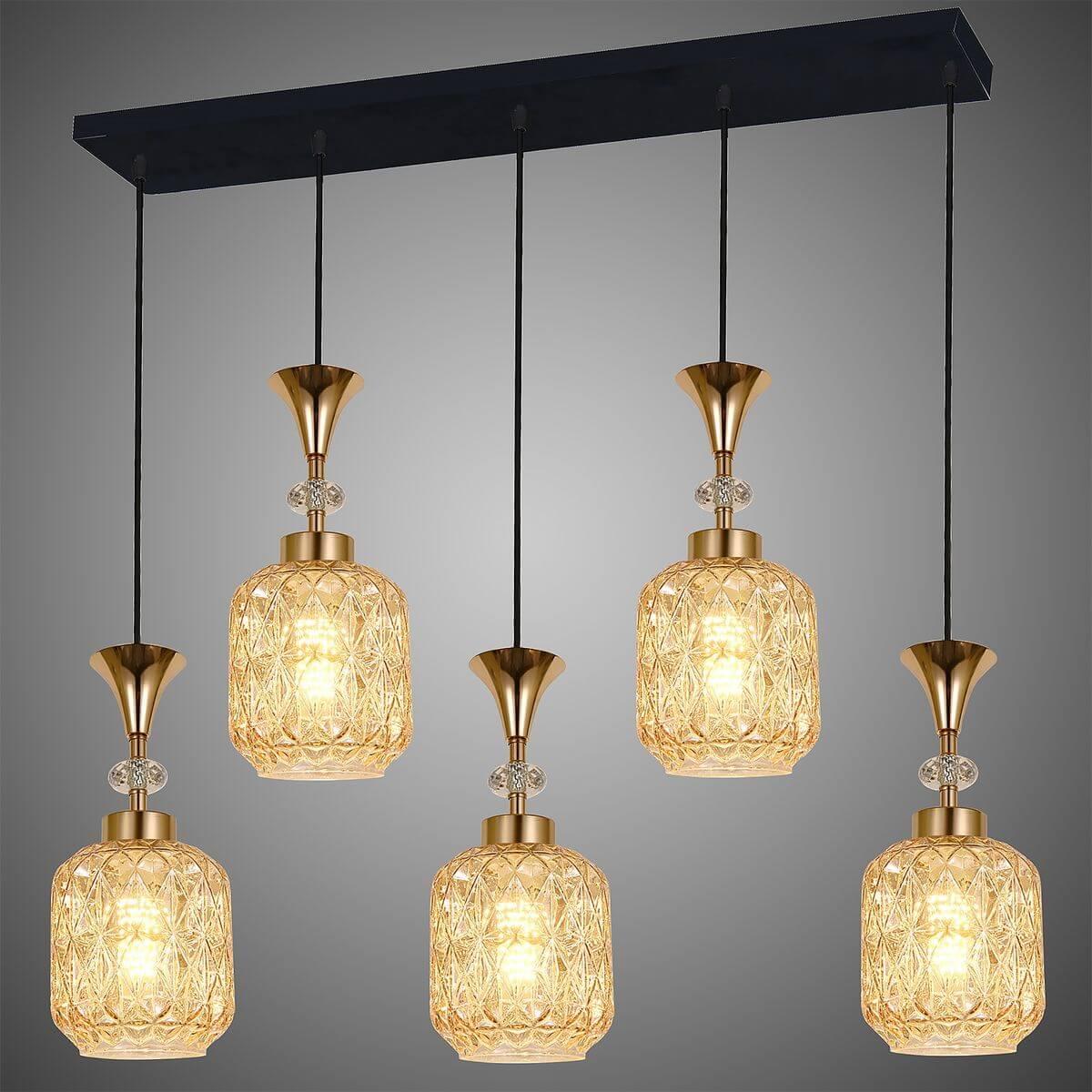 Подвесной светильник Reluce 02003-0.9-05L Amber от Китайского бренда из коллекции 02003 предназначен для установки на потолок в кухне в ретро стиле. Cветильник в форме с металлической арматурой и коричневого цвета плафонами из стекла предназначен для освещения 30 м2.