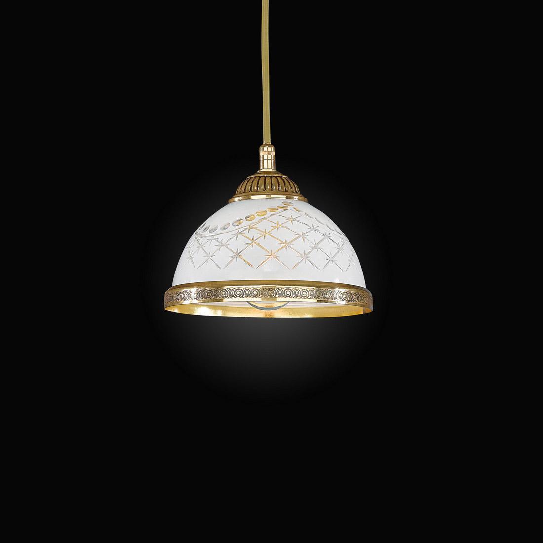 Подвесной светильник Reccagni Angelo L 7102/16 от Итальянского бренда из коллекции rosa 7102 предназначен для установки на потолок в кухне в стиле модерн. Cветильник в форме с латунной арматурой залотого цвета и белого цвета плафонами из стекла предназначен для освещения 3 м2.