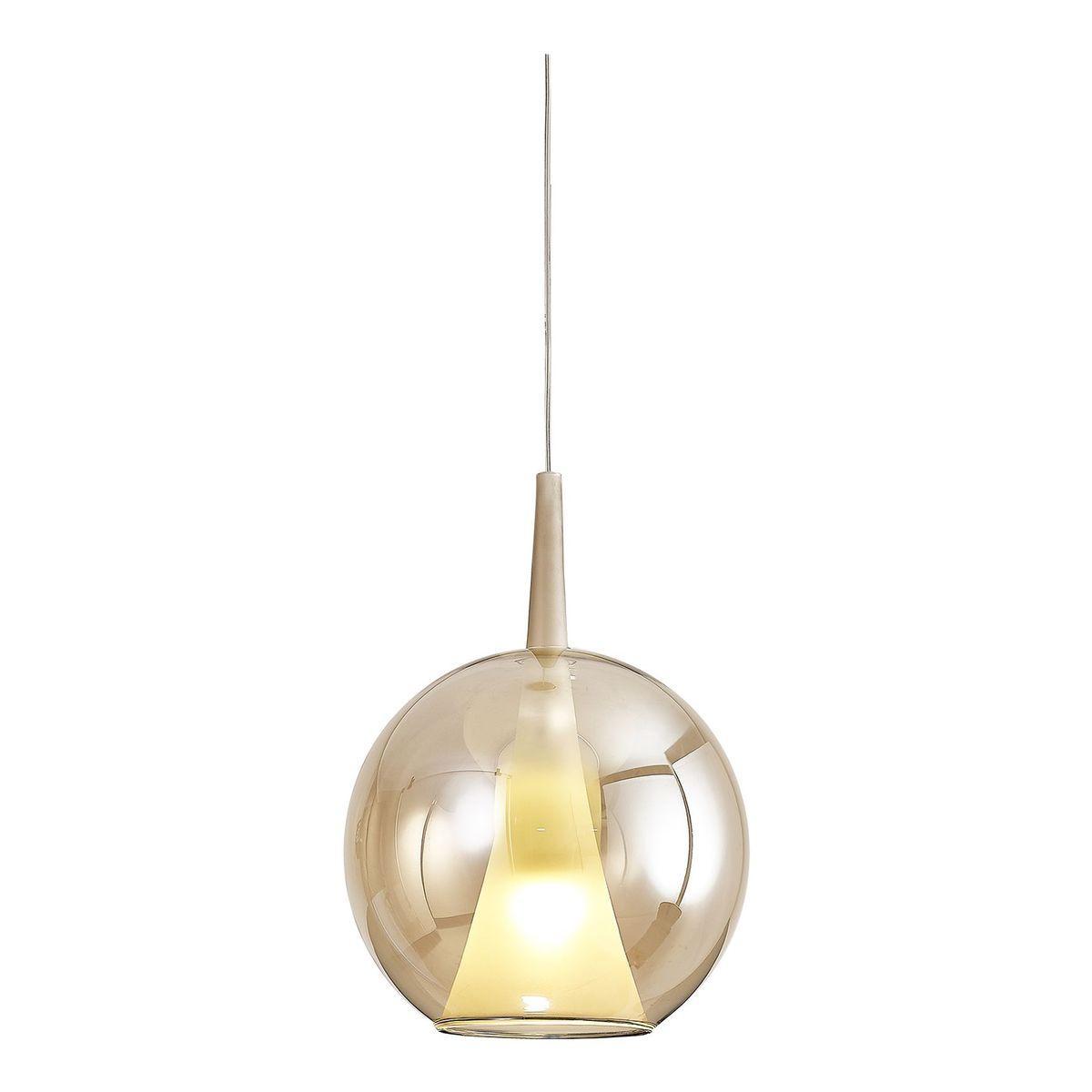 Подвесной светильник Mantra Elsa 8244+8265 от Китайского бренда из коллекции Elsa предназначен для установки на потолок в кухне в стиле модерн. Cветильник в форме с металлической арматурой залотого цвета и бронзового цвета плафонами из стекла предназначен для освещения м2.