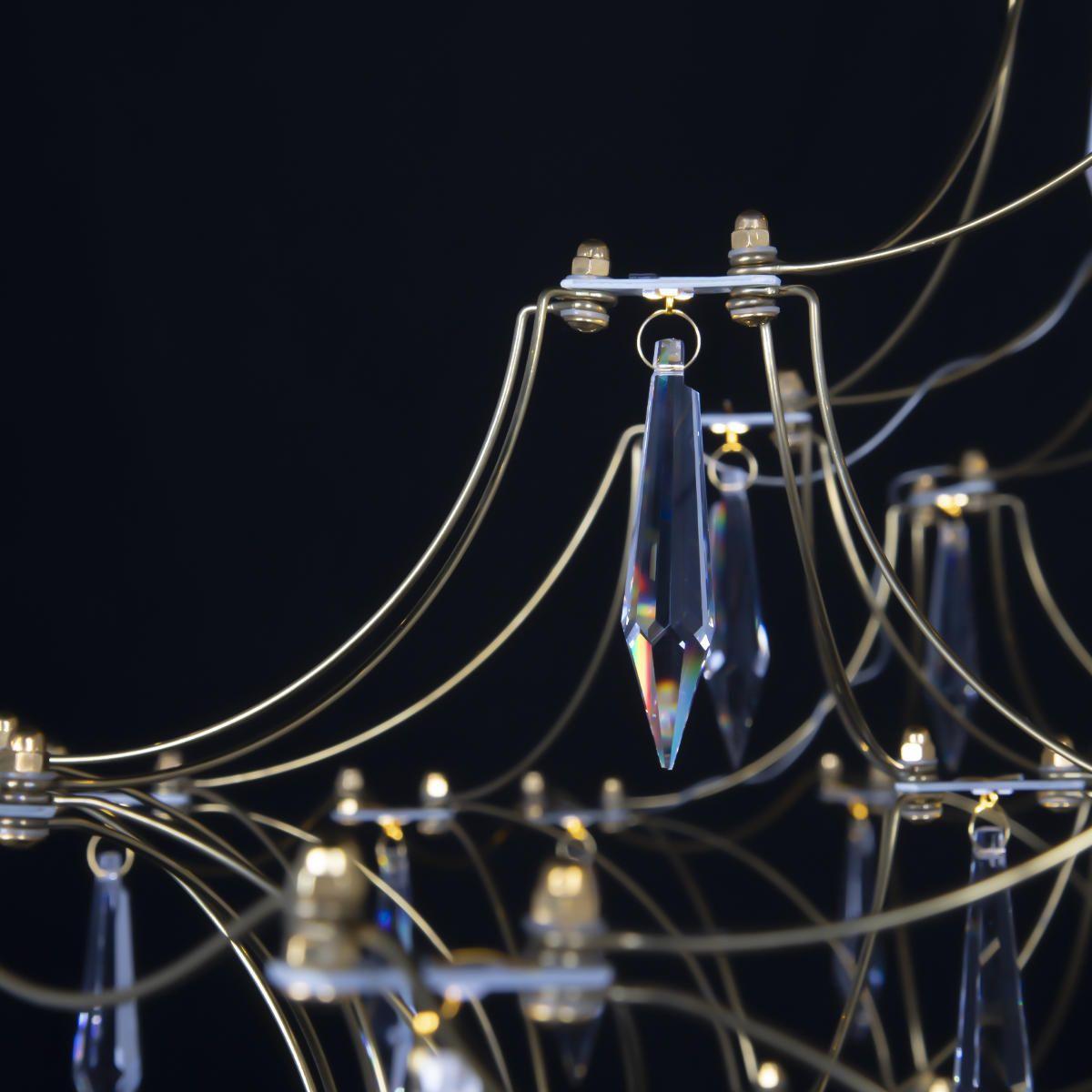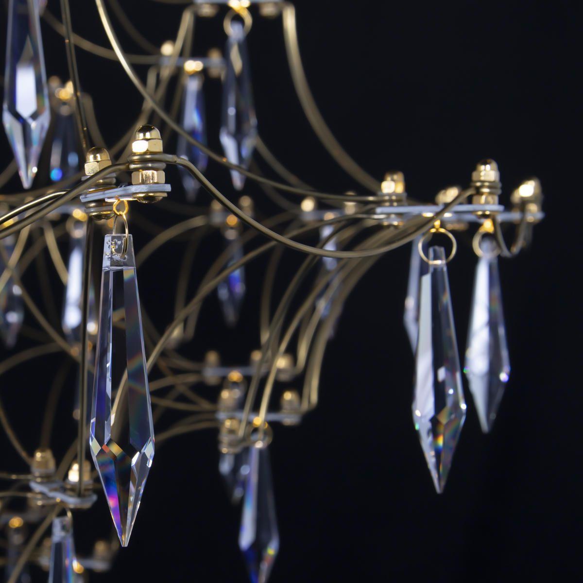 Подвесной светодиодный светильник Loft IT Mira 10259/1200 Gold Asfour от Китайского бренда из коллекции Mira предназначен для установки на потолок в гостиной в стиле Арт-деко. Cветильник в форме с металлической арматурой залотого цвета и плафонами из хрусталя предназначен для освещения м2.