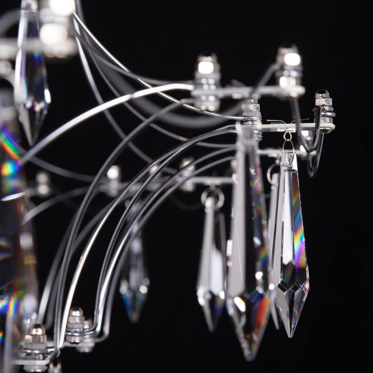Подвесной светодиодный светильник Loft IT Mira 10259/1200 Silver Asfour от Китайского бренда из коллекции Mira предназначен для установки на потолок в гостиной в стиле Арт-деко. Cветильник в форме с металлической арматурой серебрянного цвета и плафонами из хрусталя предназначен для освещения м2.