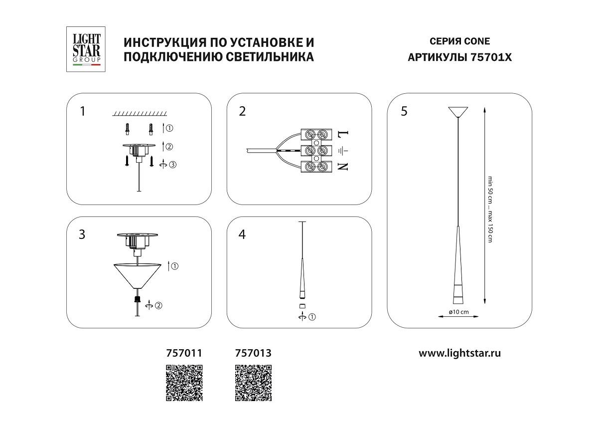 Подвесной светодиодный светильник Lightstar Cone 757013 от Китайского бренда из коллекции Cone предназначен для установки на потолок в гостиной в современном стиле. Cветильник в форме с металлической арматурой и плафонами из предназначен для освещения м2.