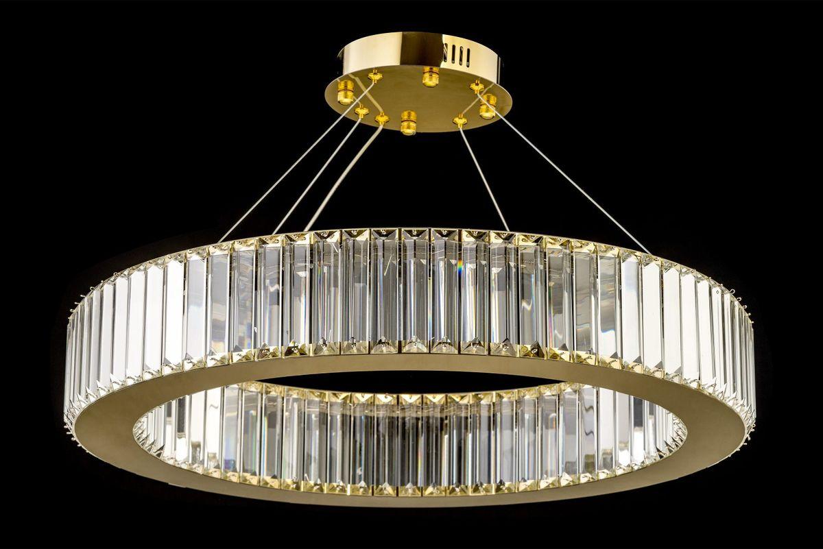 Подвесной светодиодный светильник Arti Lampadari Anzio L 1.5.60.100 G от Итальянского бренда из коллекции Anzio предназначен для установки на потолок в спальни в стиле модерн. Cветильник в форме с металлической арматурой залотого цвета и прозрачного цвета плафонами из хрусталя предназначен для освещения м2.