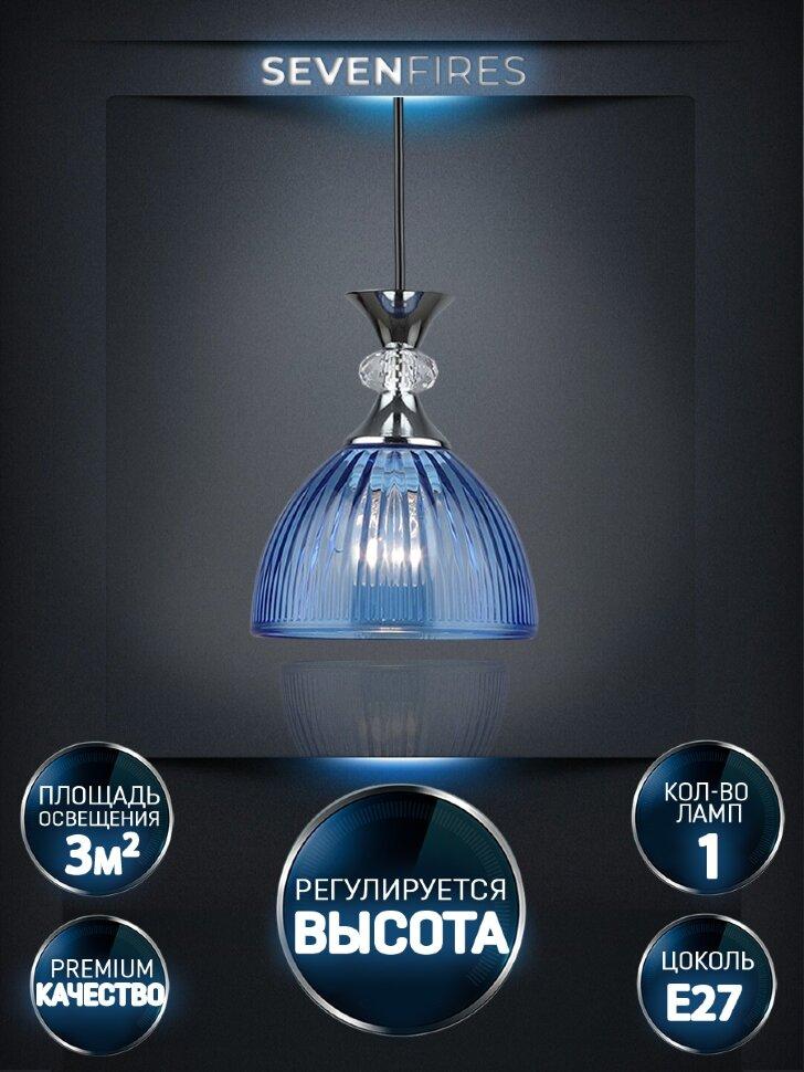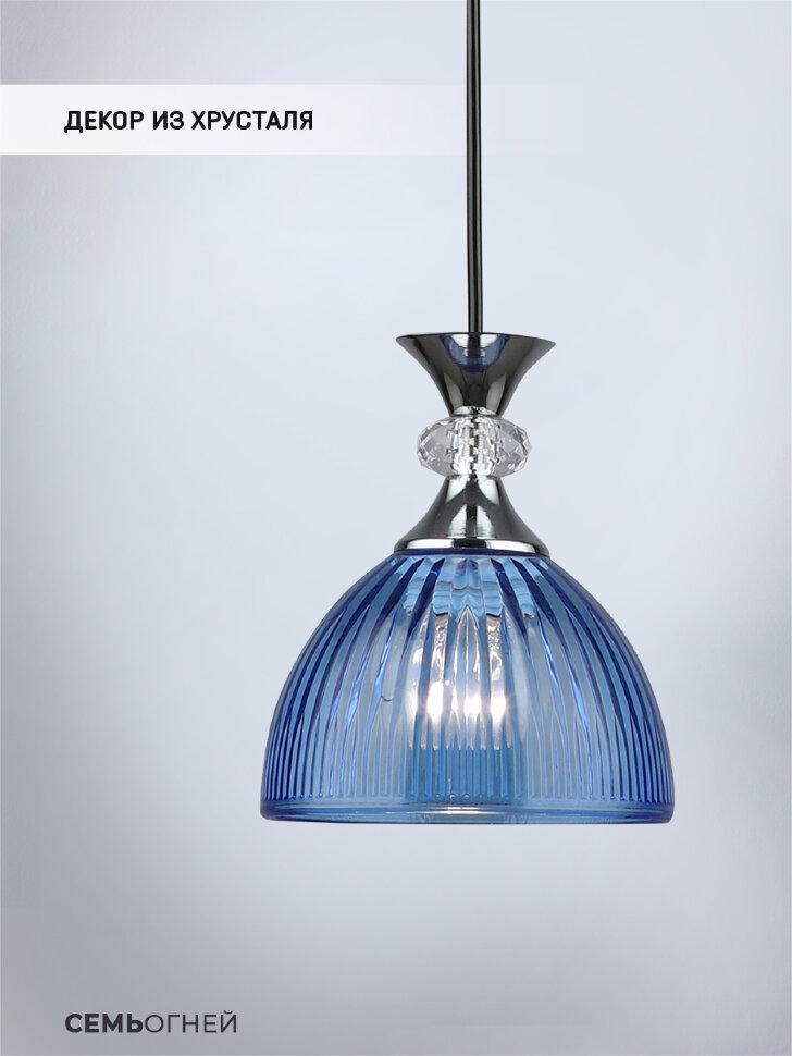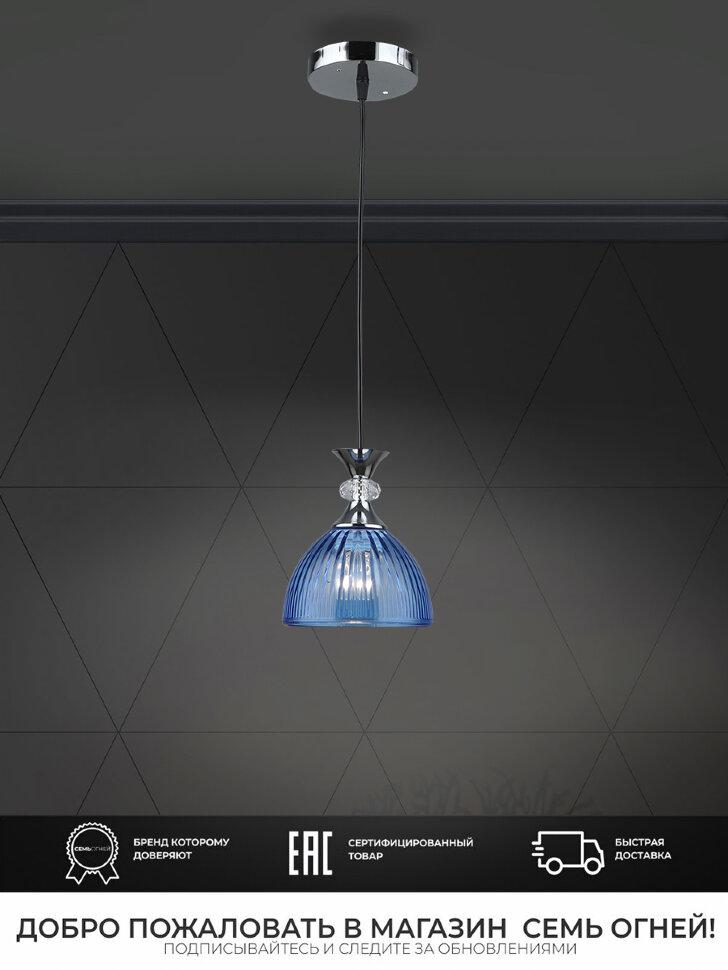 Подвесной светильник Seven Fires Leki WD3629/1P-CR-BL от бренда из коллекции Leki предназначен для установки на потолок в прихожей в стиле модерн. Cветильник в форме с металлической арматурой цвет хрома и голобого цвета плафонами из стекла предназначен для освещения 3 м2.