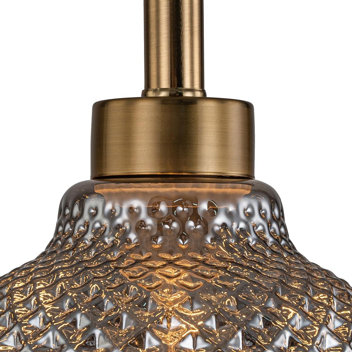 Подвесной светильник Indigo Caramella 11039/1P Smoke V000432 от бренда из коллекции Caramella предназначен для установки на потолок в гостиной в стиле модерн. Cветильник в форме с металлической арматурой бронзового цвета и дымчатого цвета плафонами из стекла предназначен для освещения м2.