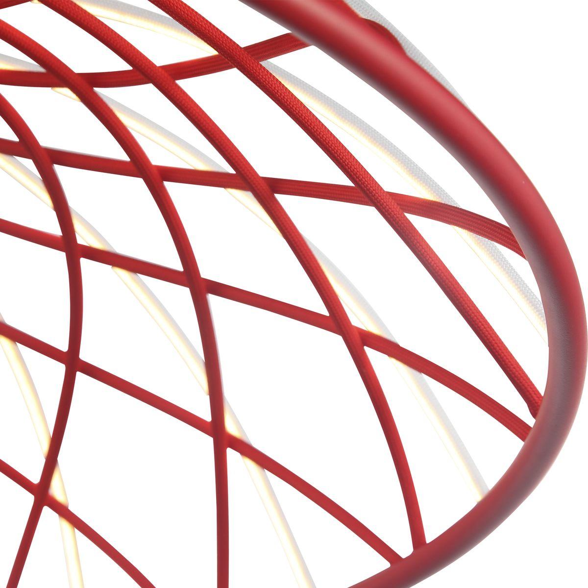 Подвесной светодиодный светильник ST Luce Bound SL6016.603.01 от Китайского бренда из коллекции Bound предназначен для установки на потолок в кухне в скандинавском стиле. Cветильник в форме с металлической арматурой красного цвета и плафонами из ткани предназначен для освещения 7 м2.