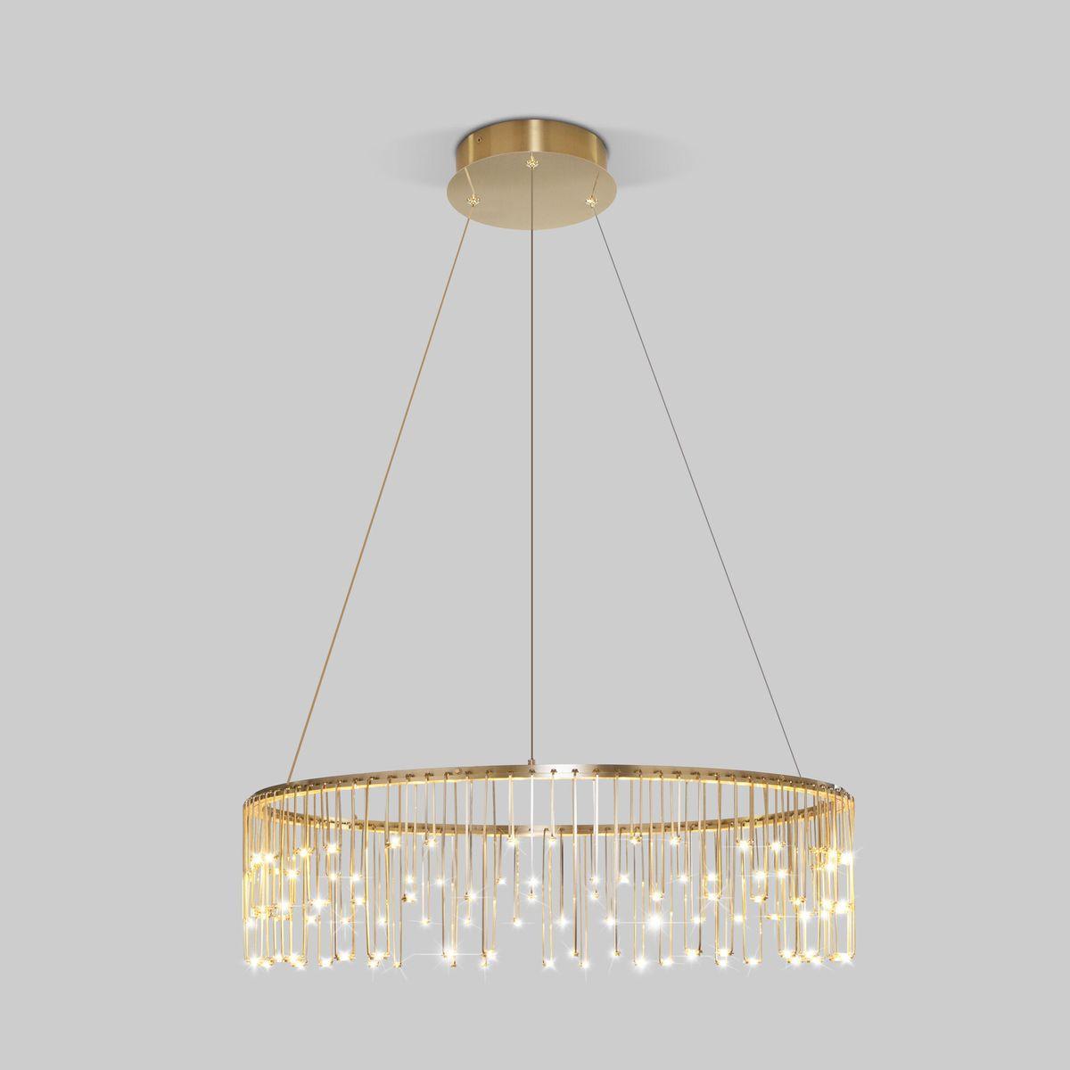 Подвесной светодиодный светильник Bogates Firefly 454/1 от Китайского бренда из коллекции Firefly предназначен для установки на потолок в гостиной в стиле Арт-деко. Cветильник в форме с металлической арматурой цвета латуни и цвета латуни плафонами из металла предназначен для освещения 7 м2.
