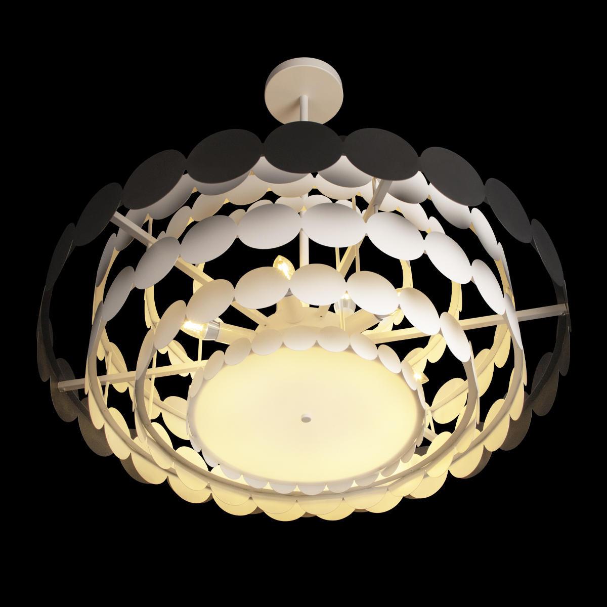 Для светильника необходима 9 ламп накаливания 40 W. Габариты изделия: высота – 320 мм, диаметр – 820 мм.