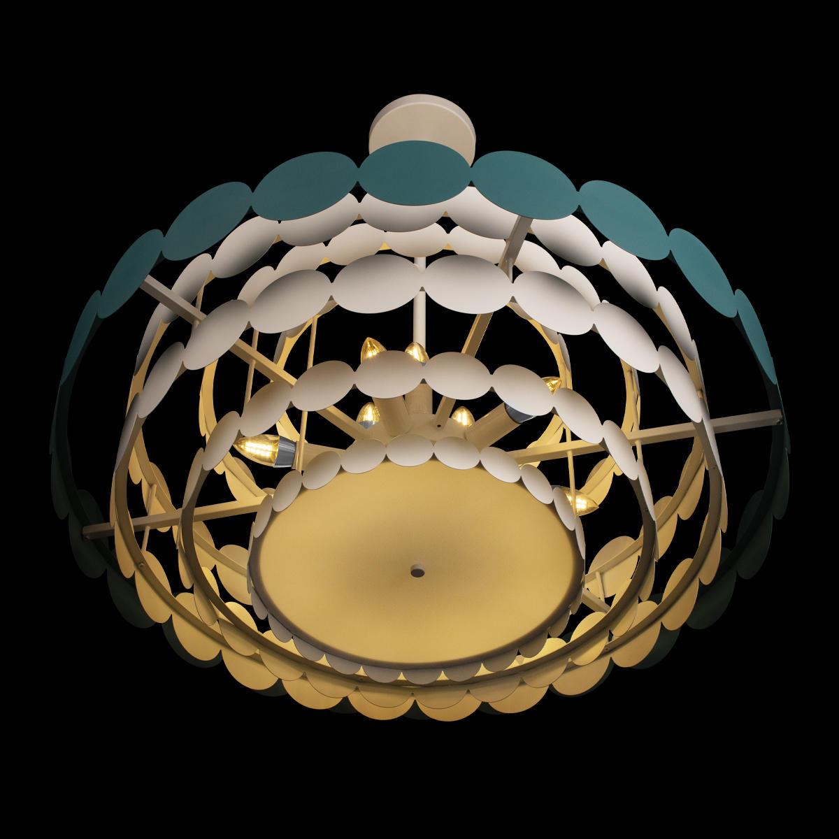 Для светильника необходима 9 ламп накаливания 40 W. Габариты изделия: высота – 320 мм, диаметр – 820 мм.