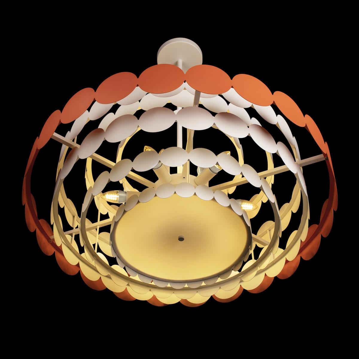 Для светильника необходима 9 ламп накаливания 40 W. Габариты изделия: высота – 320 мм, диаметр – 820 мм.