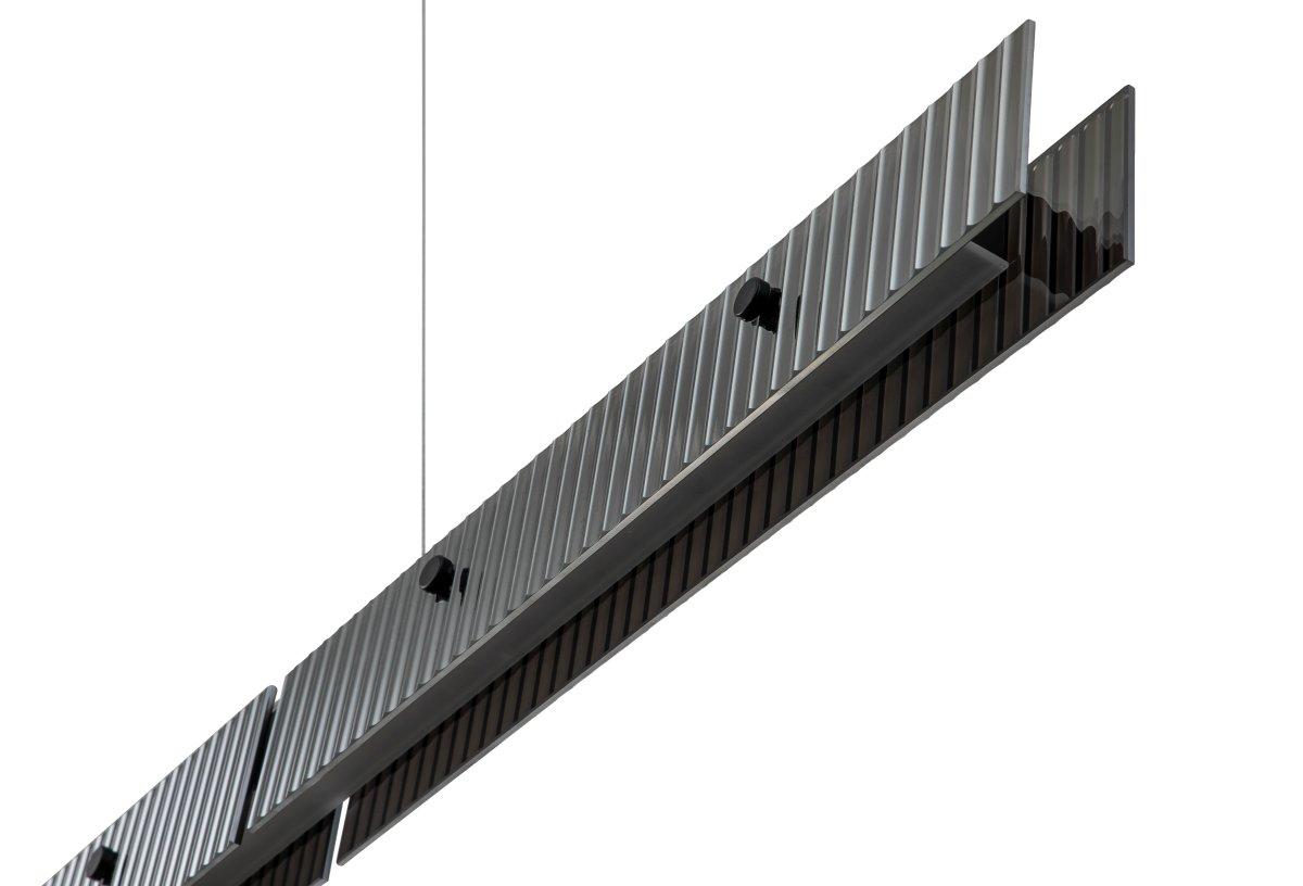Подвесной светодиодный светильник Stilfort Lucen 4007/02/14PL от Китайского бренда из коллекции Lucen предназначен для установки на потолок в офисе в современном стиле. Cветильник в форме с металлической арматурой черного цвета и дымчатого цвета плафонами из стекла предназначен для освещения 12 м2.