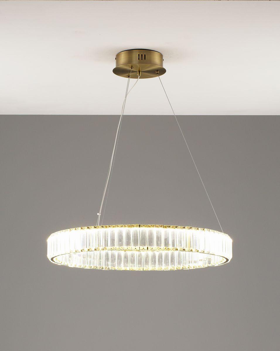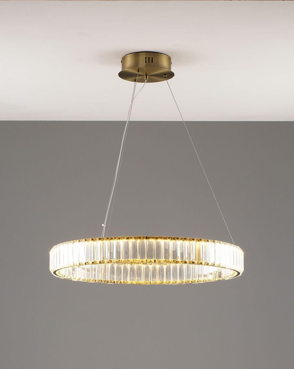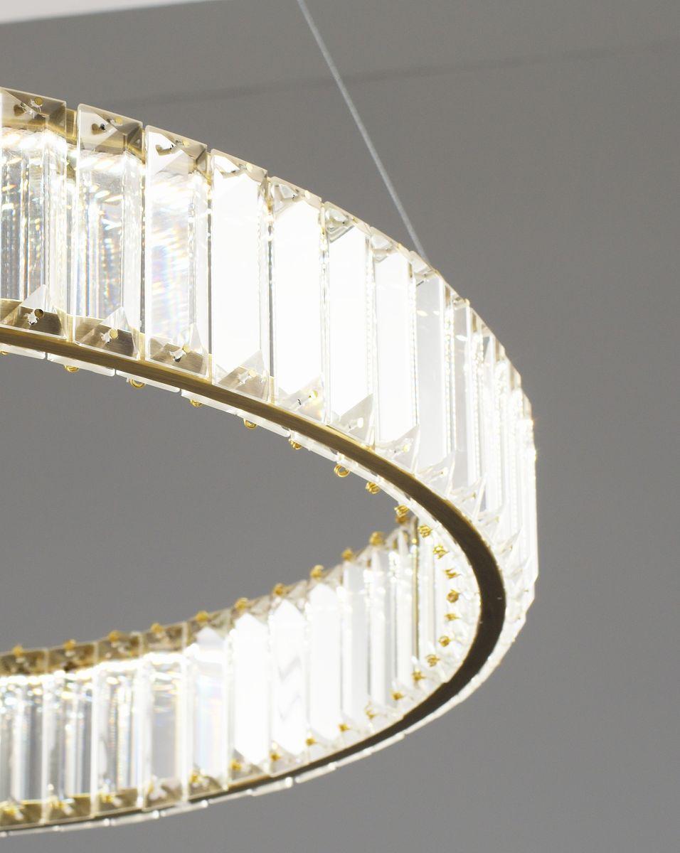 Подвесной светодионый светильник Moderli Asti V10730-PL от Китайского бренда из коллекции Asti предназначен для установки на потолок в . Cветильник в форме с металлической арматурой залотого цвета и прозрачного цвета плафонами из хрусталя предназначен для освещения 12 м2.