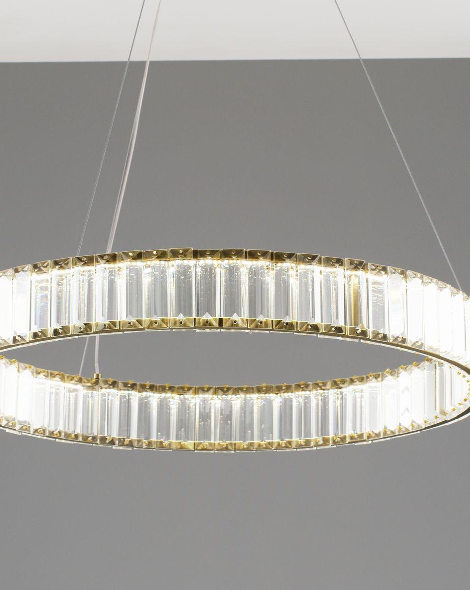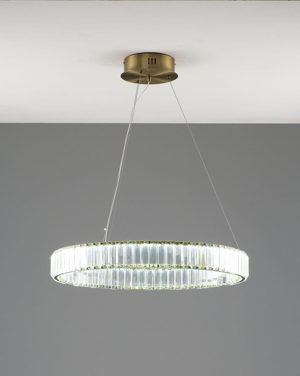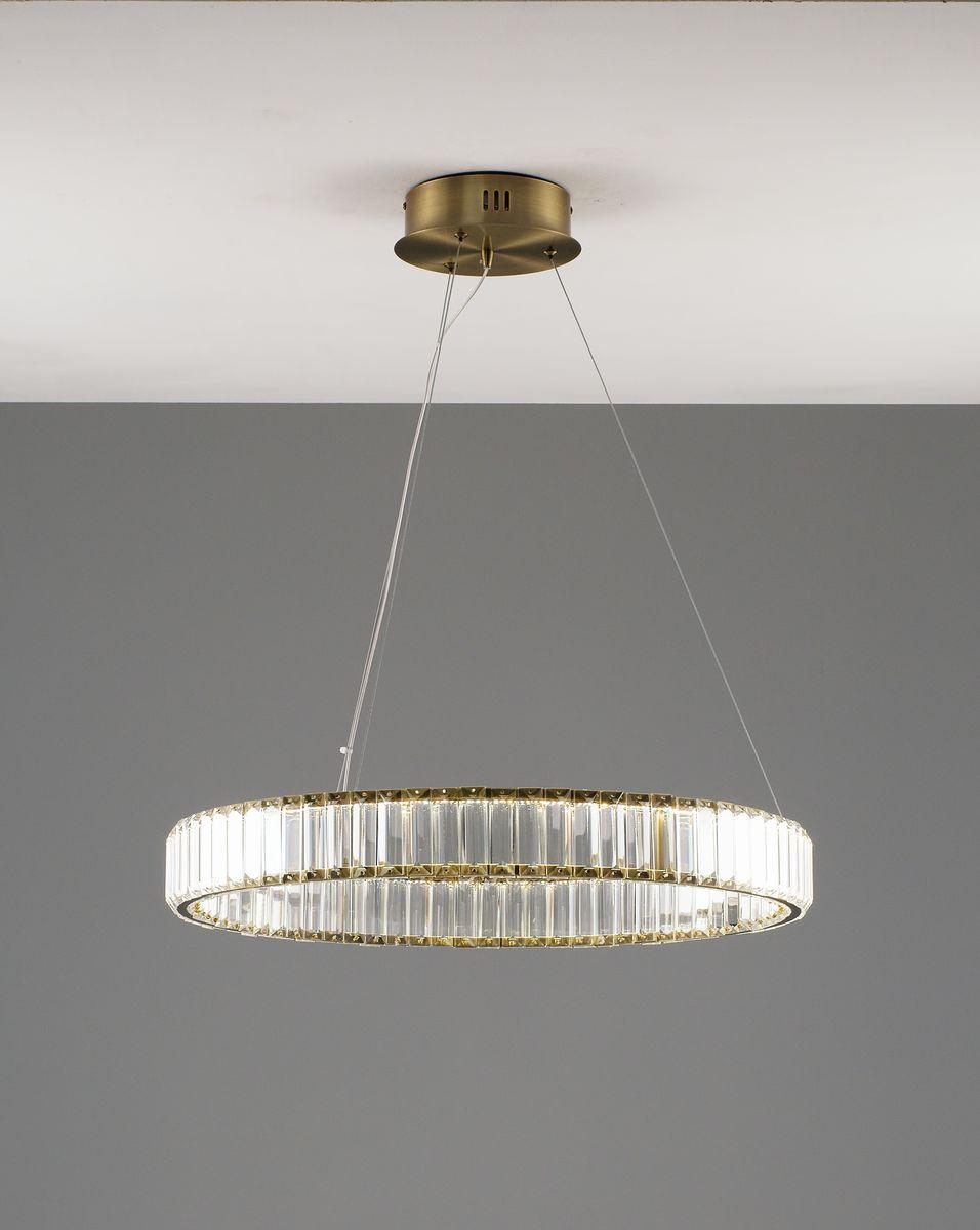 Подвесной светодионый светильник Moderli Asti V10730-PL от Китайского бренда из коллекции Asti предназначен для установки на потолок в . Cветильник в форме с металлической арматурой залотого цвета и прозрачного цвета плафонами из хрусталя предназначен для освещения 12 м2.