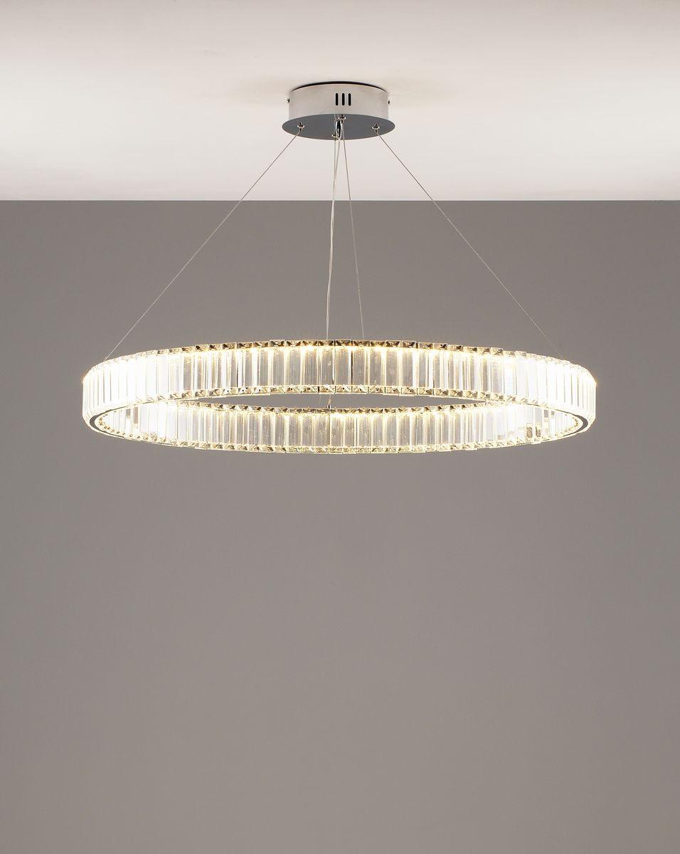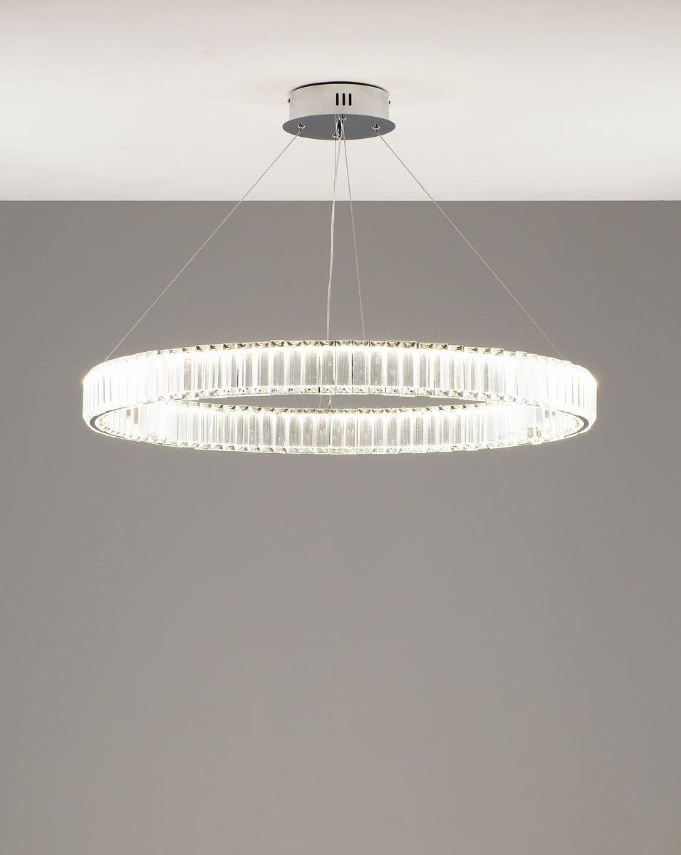 Подвесной светодионый светильник Moderli Asti V10734-PL от Китайского бренда из коллекции Asti предназначен для установки на потолок в спальни в . Cветильник в форме с металлической арматурой цвет хрома и прозрачного цвета плафонами из хрусталя предназначен для освещения 13 м2.