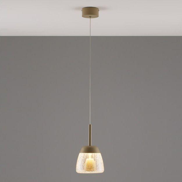 Подвесной светодиодный светильник Moderli Eir V10873-PL от Китайского бренда из коллекции Eir предназначен для установки на потолок в спальни в хай-тек стиле. Cветильник в форме с металлической арматурой бежевого цвета и прозрачного цвета плафонами из стекла предназначен для освещения 5 м2.