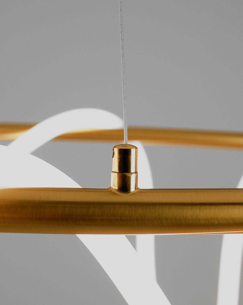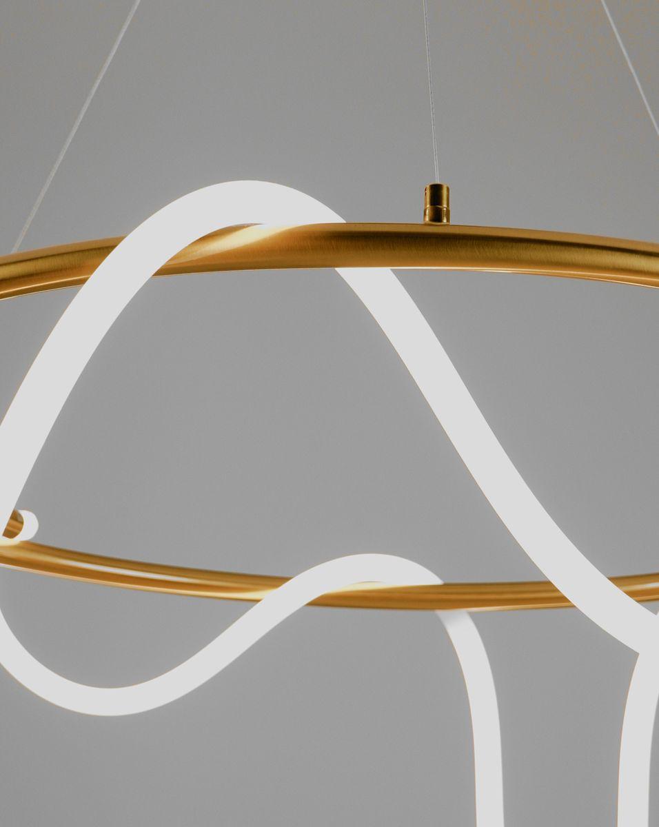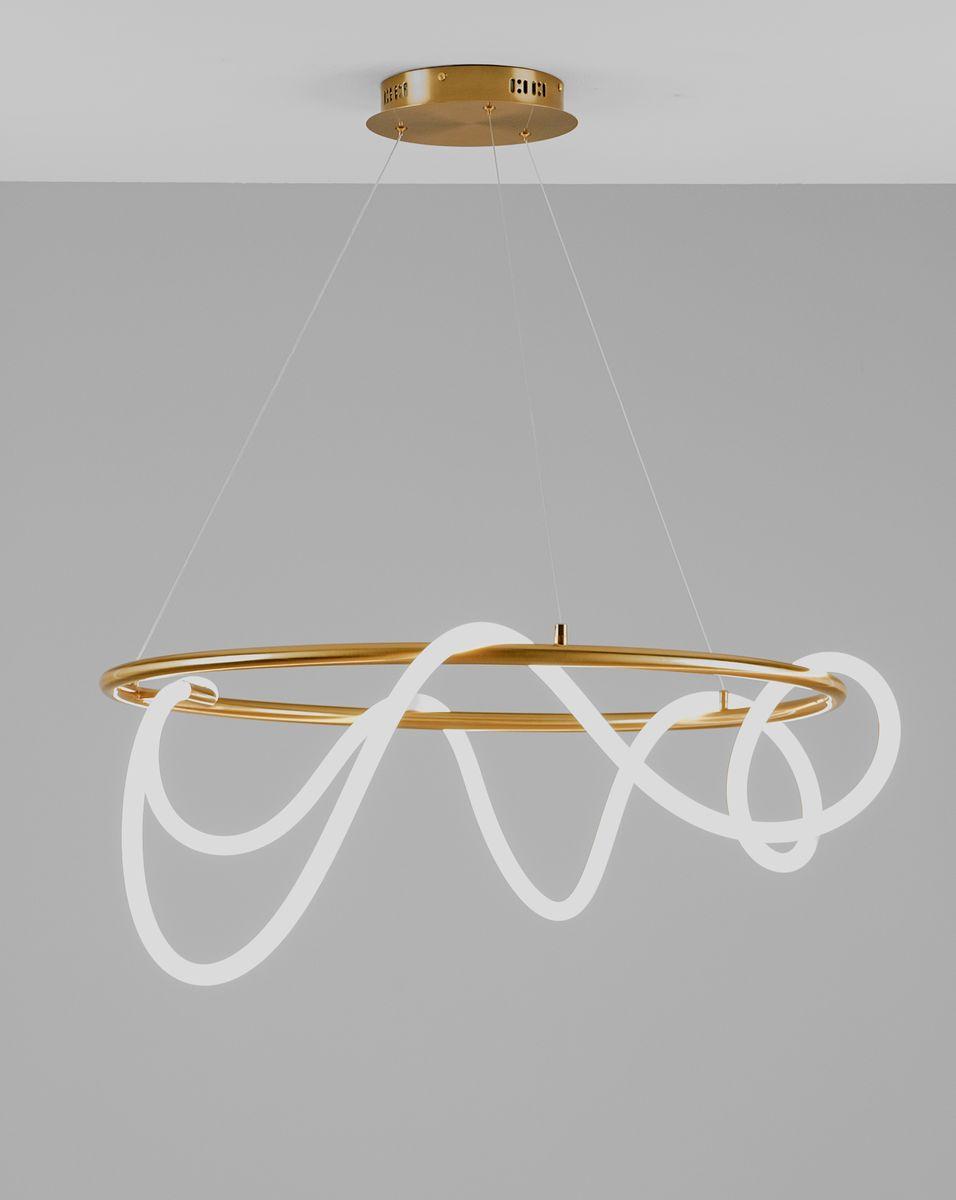 Подвесной светодиодный светильник Moderli True V10686-PL от Китайского бренда из коллекции True предназначен для установки на потолок в гостиной в хай-тек стиле. Cветильник в форме с металлической арматурой залотого цвета и белого цвета плафонами из силикона предназначен для освещения 15 м2.