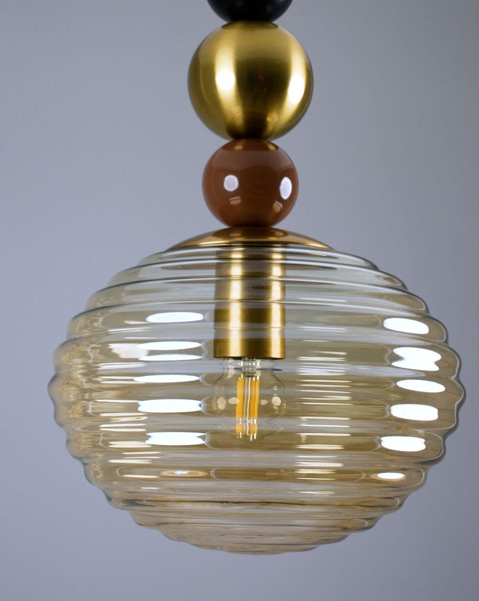 Подвесной светильник Moderli Arti V10913-P от Китайского бренда из коллекции Arti предназначен для установки на потолок в гостиной в восточном стиле. Cветильник в форме с металлической арматурой бронзового цвета и янтарного цвета плафонами из стекла предназначен для освещения 4 м2.