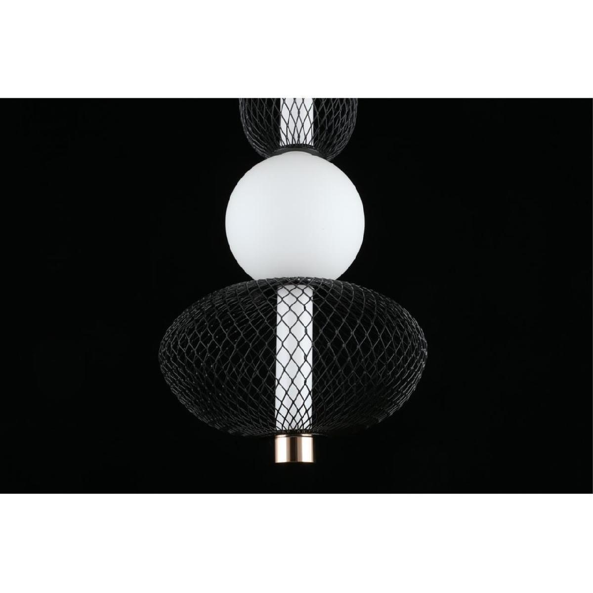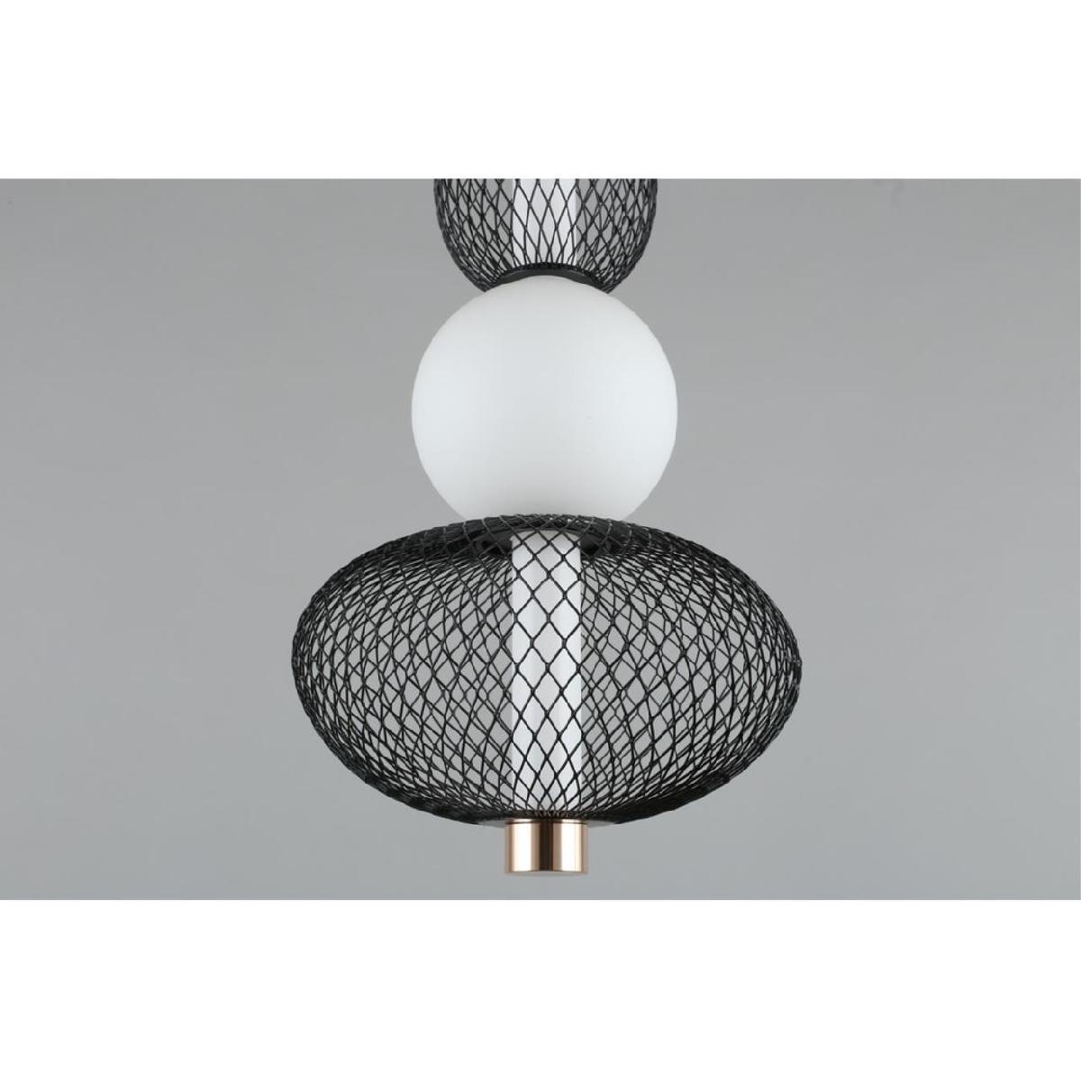 Подвесной светодиодный светильник Aployt Nikusia APL.658.06.13 от Китайского бренда из коллекции Nikusia предназначен для установки на потолок в гостиной в стиле модерн. Cветильник в форме с металлической арматурой черного цвета и плафонами из стекла предназначен для освещения 3 м2.