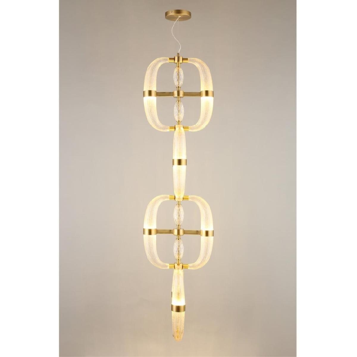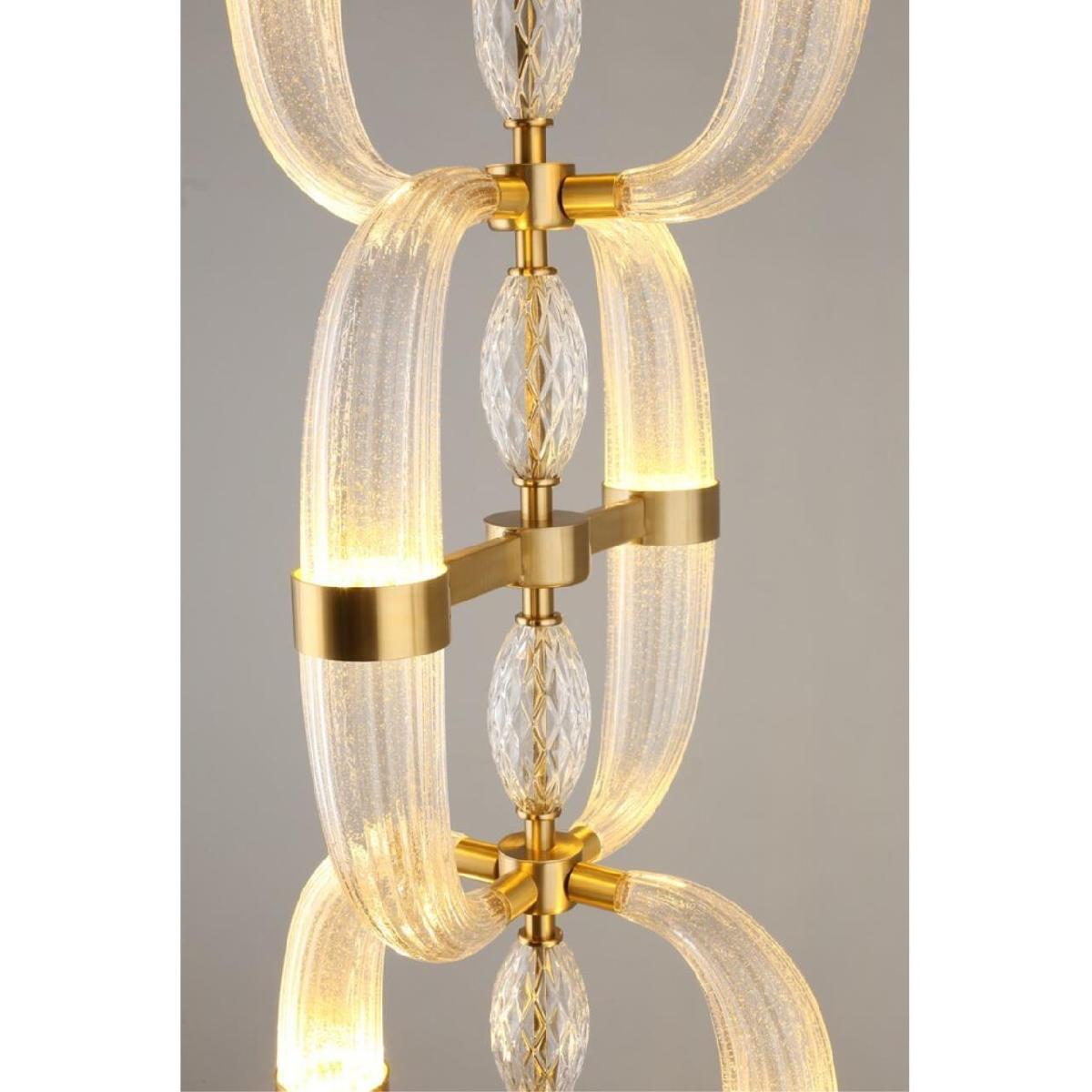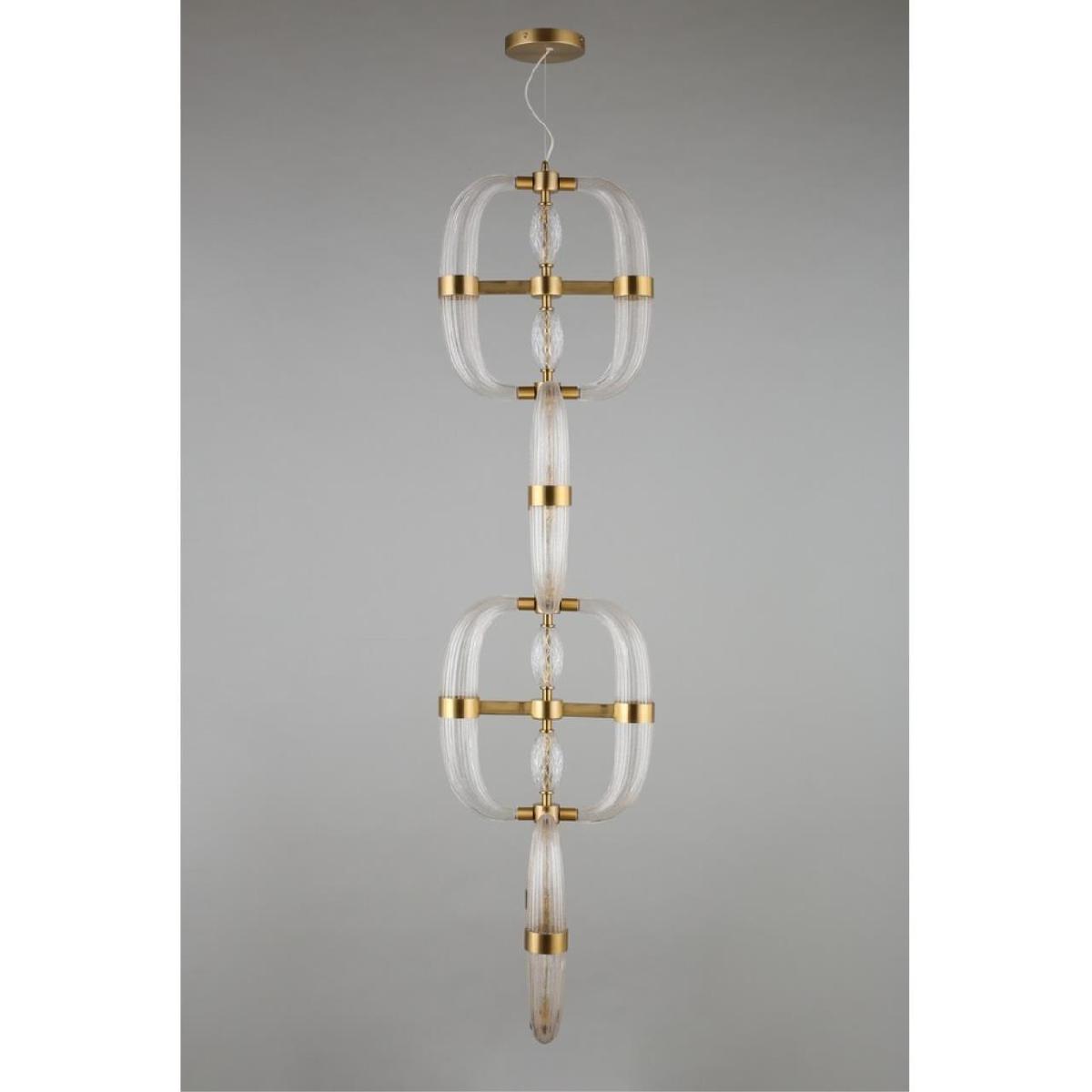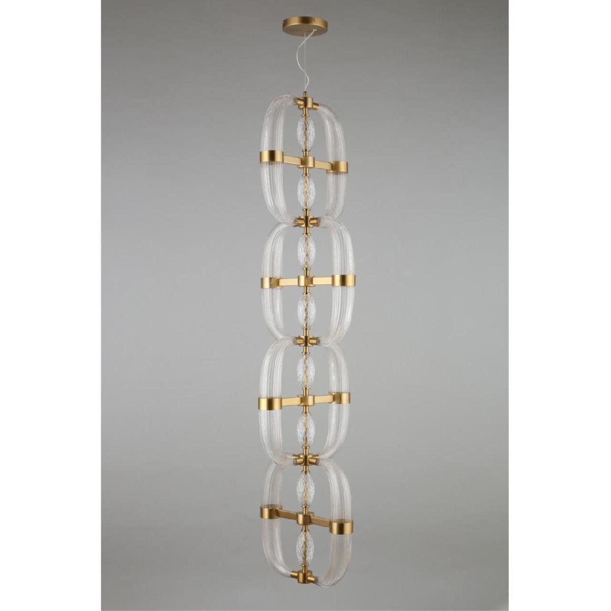 Подвесной светодиодный светильник Aployt Aleksandra APL.857.06.80 от Китайского бренда из коллекции Aleksandra предназначен для установки на потолок в стиле модерн. Cветильник в форме с металлической арматурой цвета латуни и прозрачного цвета плафонами из предназначен для освещения 16 м2.