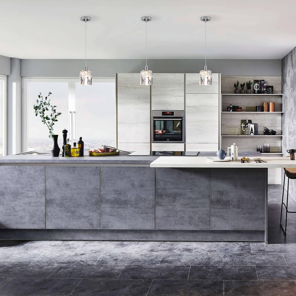 Подвесной светильник Eurosvet 50101/1 хром от Китайского бренда из коллекции Scoppio предназначен для установки на потолок в кухне в стиле модерн. Cветильник в форме с металлической арматурой цвет хрома и цвет хрома плафонами из хрусталя предназначен для освещения м2.