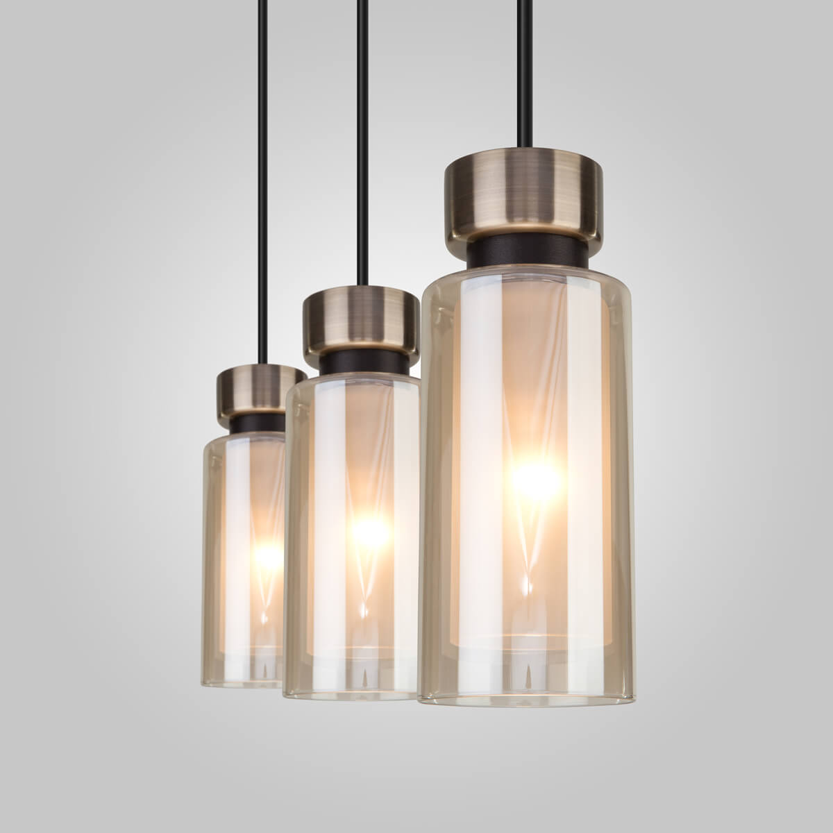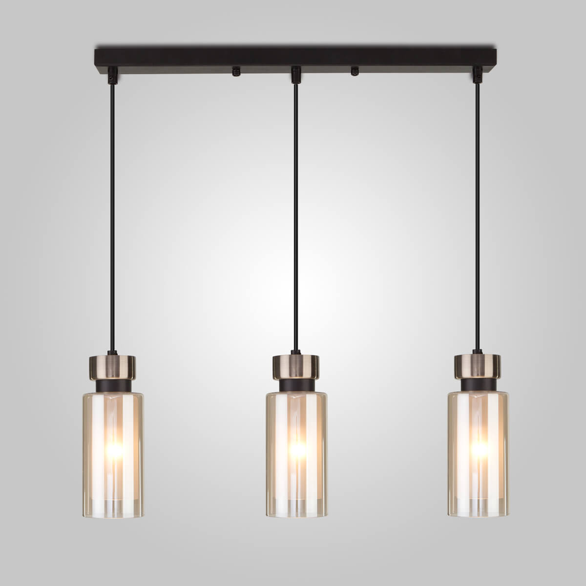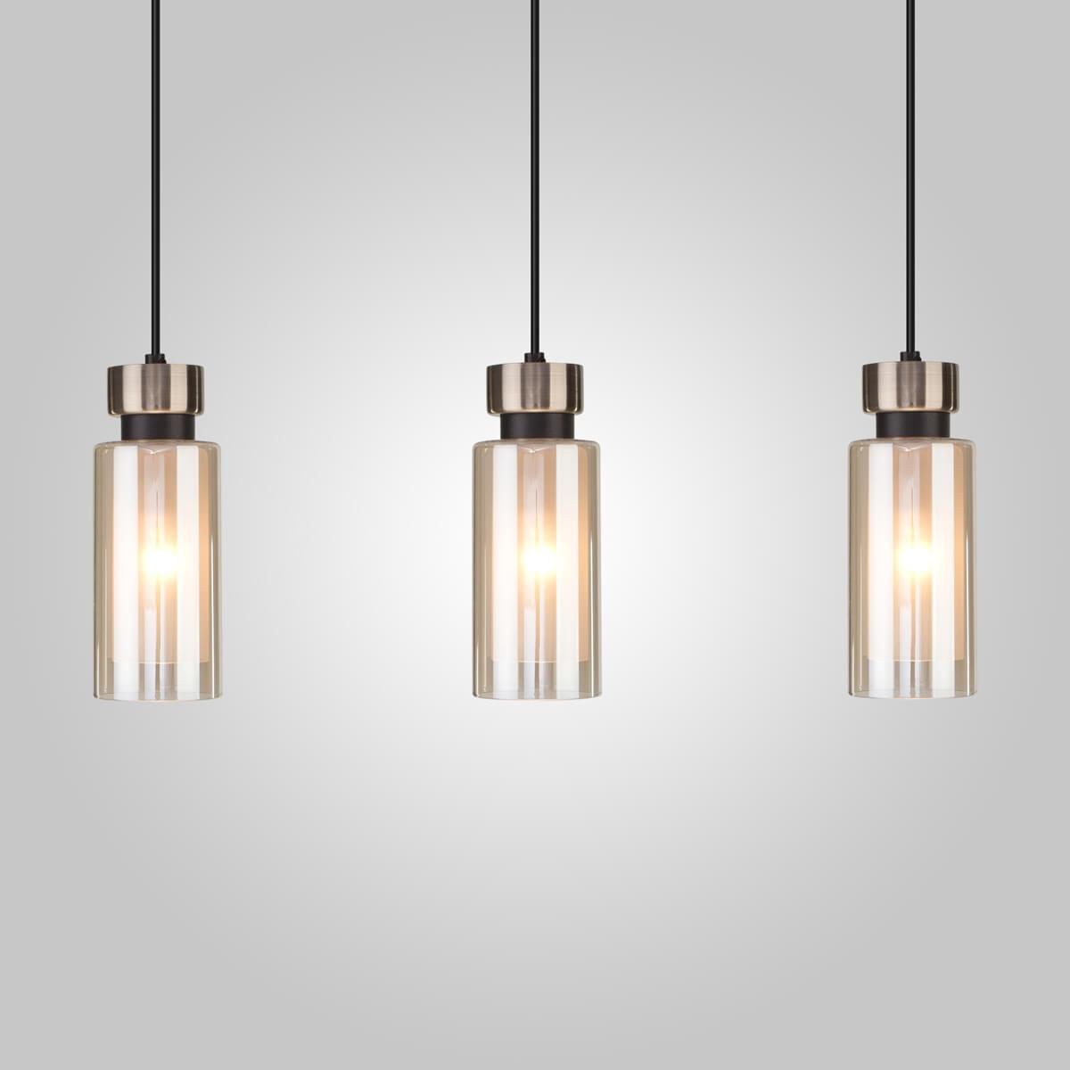 Подвесной светильник Eurosvet Amado 50115/3 черный от Китайского бренда из коллекции Amado предназначен для установки на потолок в кухне в современном стиле. Cветильник в форме с металлической арматурой черного цвета и янтарного цвета плафонами из стекла предназначен для освещения 2 м2.