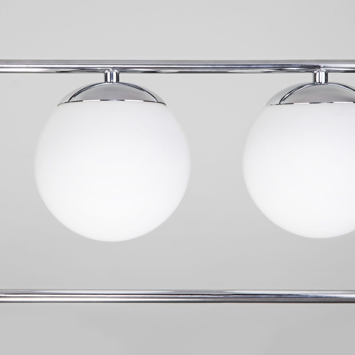 Подвесной светильник Eurosvet Ringo 50089/4 хром от Китайского бренда из коллекции Ringo предназначен для установки на потолок в кухне в скандинавском стиле. Cветильник в форме с металлической арматурой цвет хрома и кремового цвета плафонами из стекла предназначен для освещения 13 м2.