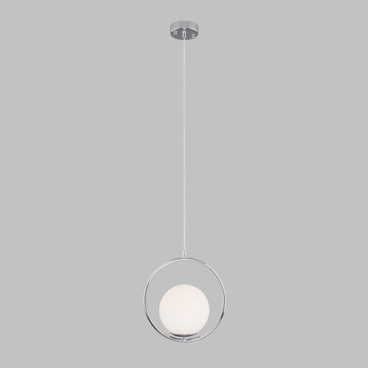 Подвесной светильник Eurosvet Ringo 50089/1 хром от Китайского бренда из коллекции Ringo предназначен для установки на потолок в кухне в скандинавском стиле. Cветильник в форме с металлической арматурой цвет хрома и белого цвета плафонами из стекла предназначен для освещения 3 м2.