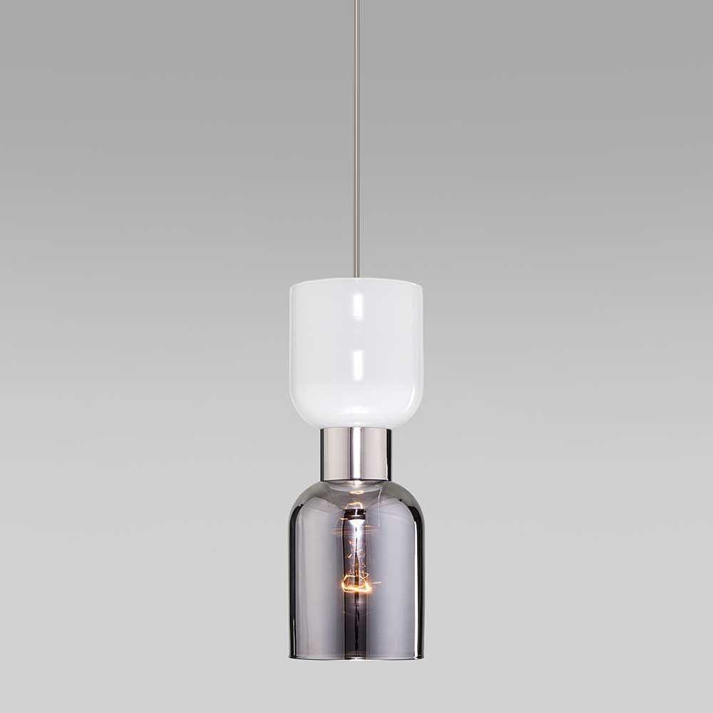 Подвесной светильник Eurosvet Tandem 50118/1 никель от Китайского бренда из коллекции Tandem предназначен для установки на потолок в кухне в современном стиле. Cветильник в форме с металлической арматурой цвета никель и дымчатого цвета плафонами из стекла предназначен для освещения 3 м2.