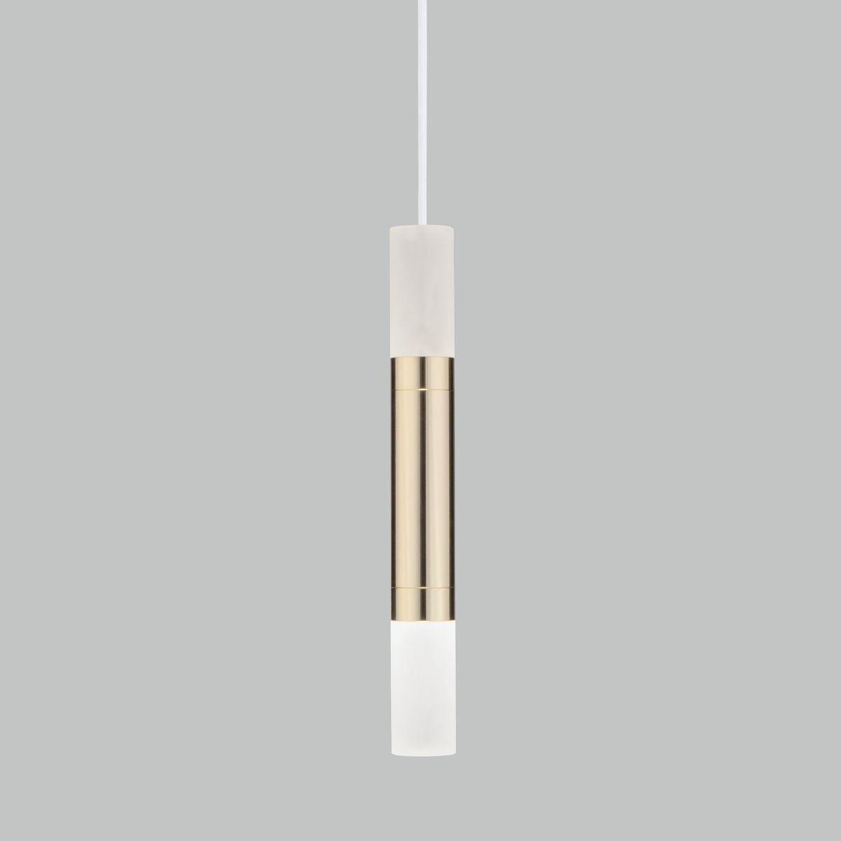 Подвесной светодиодный светильник Eurosvet Axel 50210/1 LED золото от Китайского бренда из коллекции Axel предназначен для установки на потолок в кухне в современном стиле. Cветильник в форме с металлической арматурой залотого цвета и белого цвета плафонами из акрила предназначен для освещения м2.