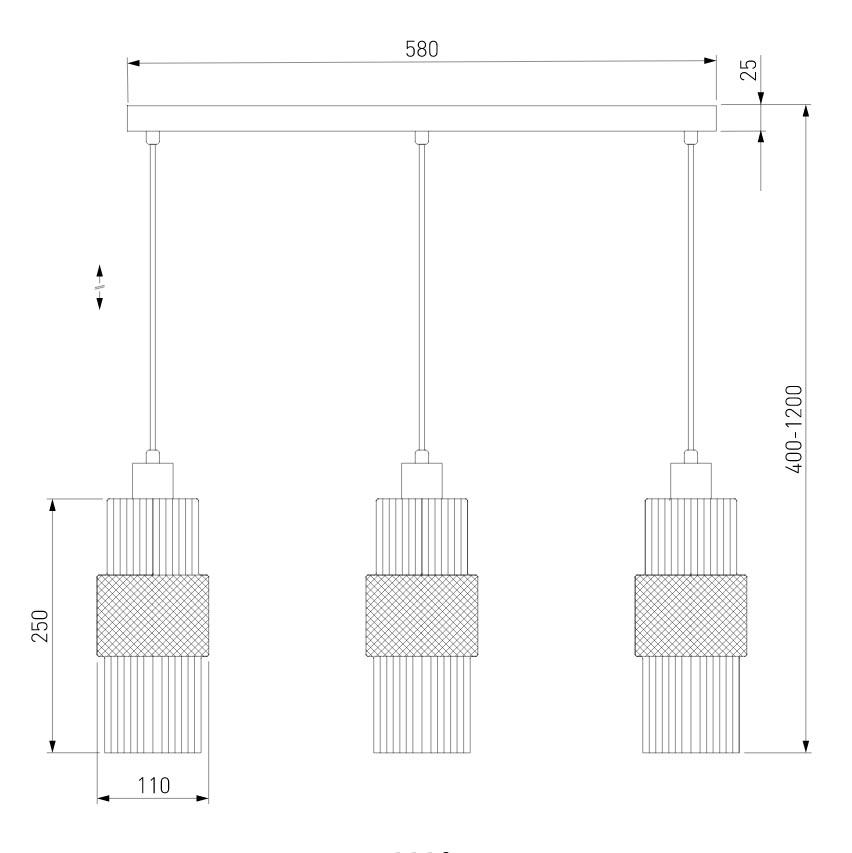 Для светильника необходима 3 лампы накаливания 40 W. Габариты изделия: высота – 400 мм, диаметр – мм.