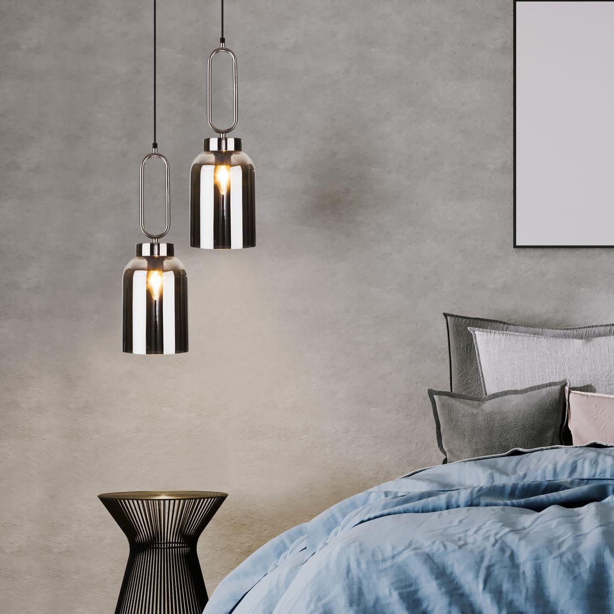 Подвесной светильник Eurosvet Flou 50229/1 дымчатый от Китайского бренда из коллекции Flou предназначен для установки на потолок в спальни в скандинавском стиле. Cветильник в форме с металлической арматурой цвета никель и дымчатого цвета плафонами из стекла предназначен для освещения 2 м2.