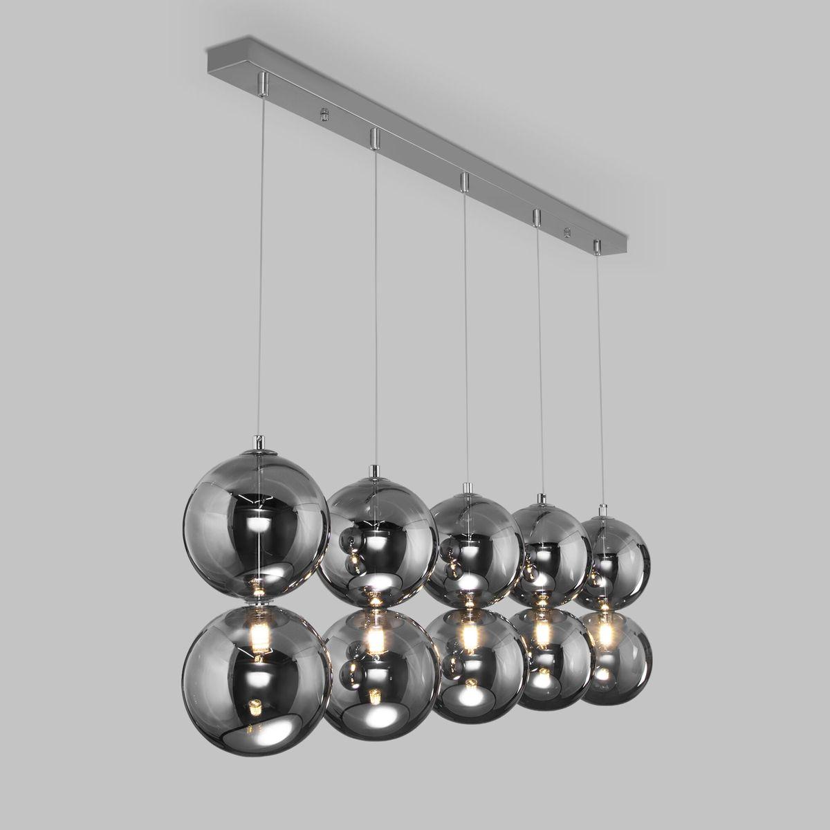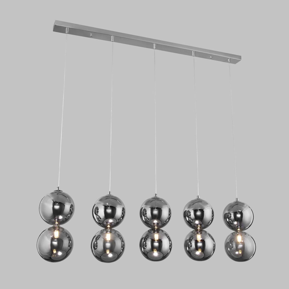 Подвесной светильник Eurosvet Selisa 50092/5 от Китайского бренда из коллекции Selisa предназначен для установки на потолок в гостиной в хай-тек стиле. Cветильник в форме с металлической арматурой цвет хрома и дымчатого цвета плафонами из стекла предназначен для освещения 3 м2.