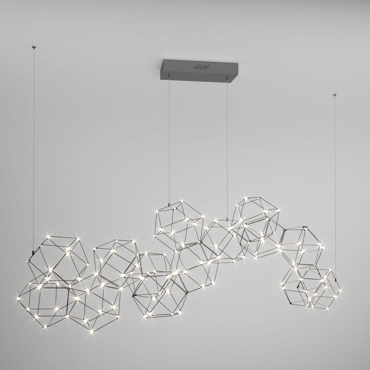 Подвесной светодиодный светильник Eurosvet Uma 90168/14 черный жемчуг от Китайского бренда из коллекции Uma предназначен для установки на потолок в больших залах в хай-тек стиле. Cветильник в форме с металлической арматурой черного цвета и черного цвета плафонами из металла предназначен для освещения 8 м2.