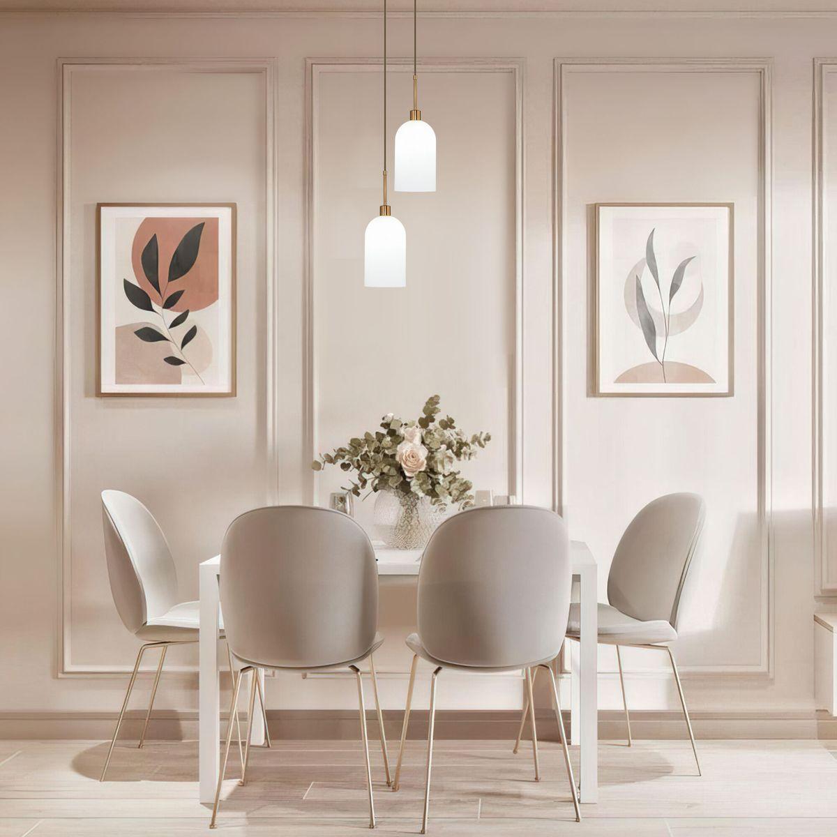 Подвесной светильник Eurosvet Bambola 50357/1 латунь от Китайского бренда из коллекции Bambola предназначен для установки на потолок в кухне в стиле модерн. Cветильник в форме с металлической арматурой и белого цвета плафонами из стекла предназначен для освещения 2 м2.