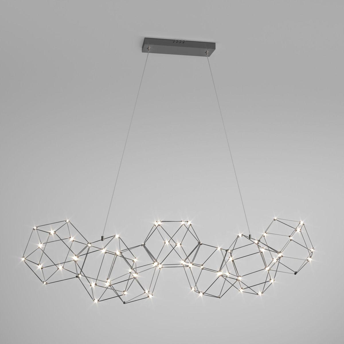 Подвесной светодиодный светильник Eurosvet Uma 90168/7 черный жемчуг от Китайского бренда из коллекции Uma предназначен для установки на потолок в гостиной в хай-тек стиле. Cветильник в форме с металлической арматурой черного цвета и черного цвета плафонами из металла предназначен для освещения 5 м2.