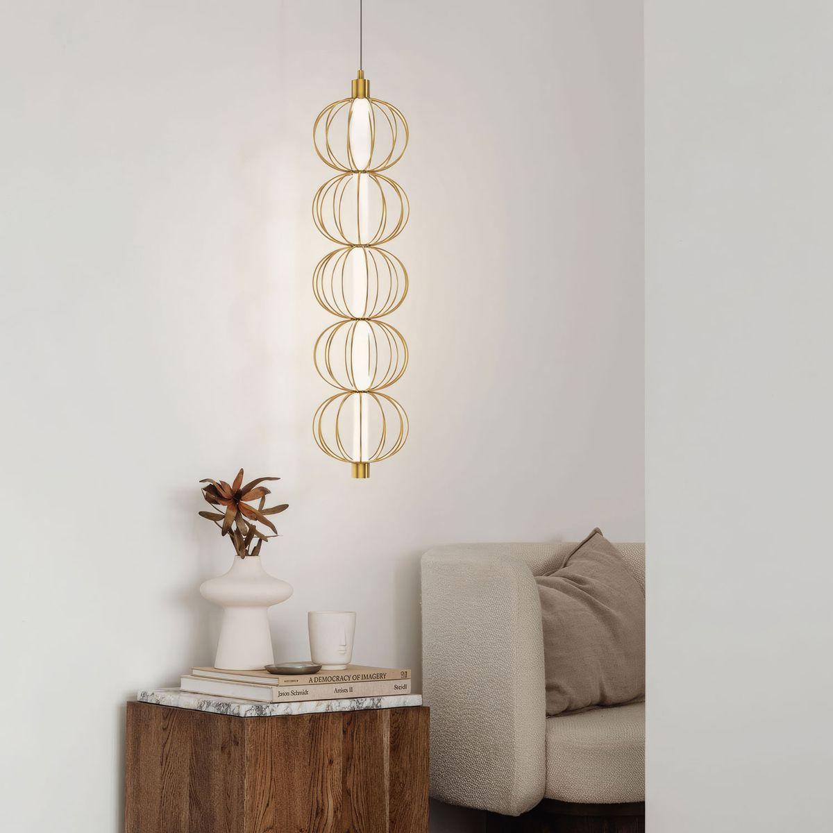 Подвесной светодиодный светильник Lussole Howard LSP-7346 от Китайского бренда из коллекции Howard предназначен для установки на потолок в стиле Арт-деко. Cветильник в форме с металлической арматурой залотого цвета и плафонами из силикона предназначен для освещения м2.