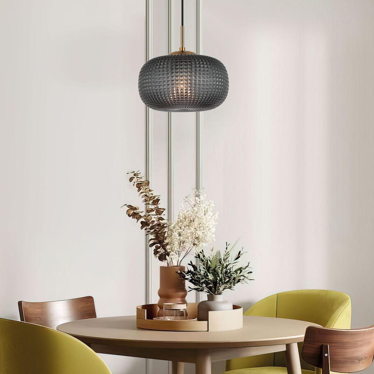 Подвесной светильник Eurosvet Gem 50262/1 темно-серый от Китайского бренда из коллекции Gem предназначен для установки на потолок в кухне в ретро стиле. Cветильник в форме с металлической арматурой и темно-серого цвета плафонами из стекла предназначен для освещения 2 м2.