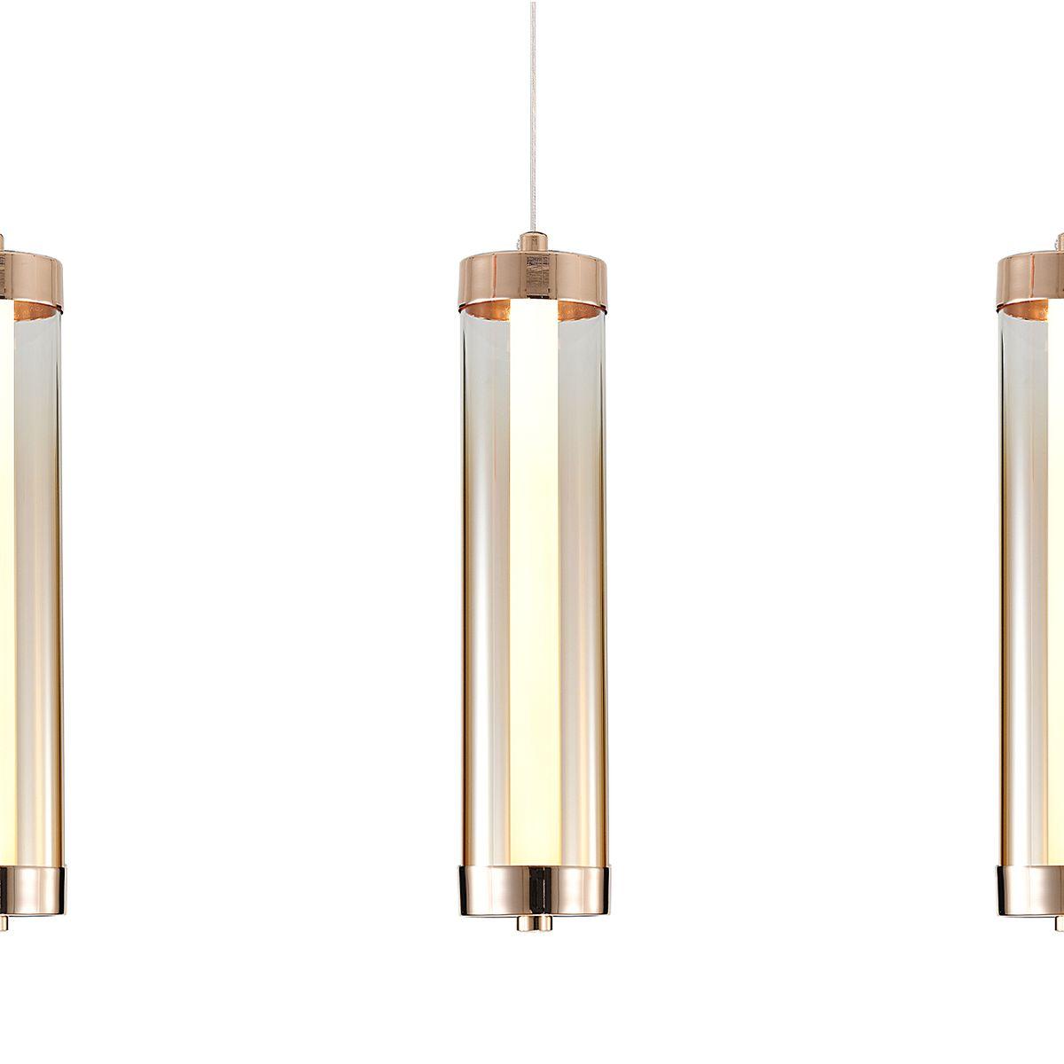 Подвесной светодиодный светильник Indigo Rilucente 11061/3P Gold V000150L от Китайского бренда из коллекции Rilucente предназначен для установки на потолок в стиле модерн. Cветильник в форме с металлической арматурой залотого цвета и янтарного цвета плафонами из стекла предназначен для освещения 2 м2.