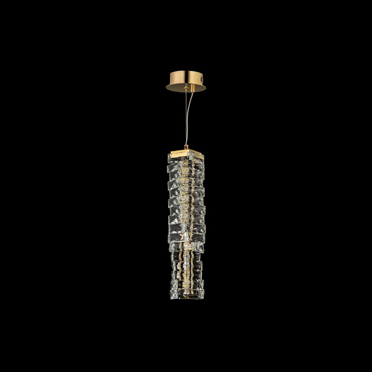 Подвесной светодиодный светильник Dio DArte Elite Magaza L 1.5.11x47.100 G от Итальянского бренда из коллекции Magaza предназначен для установки на потолок в спальни в стиле модерн. Cветильник в форме с металлической арматурой залотого цвета и прозрачного цвета плафонами из хрусталя предназначен для освещения м2.