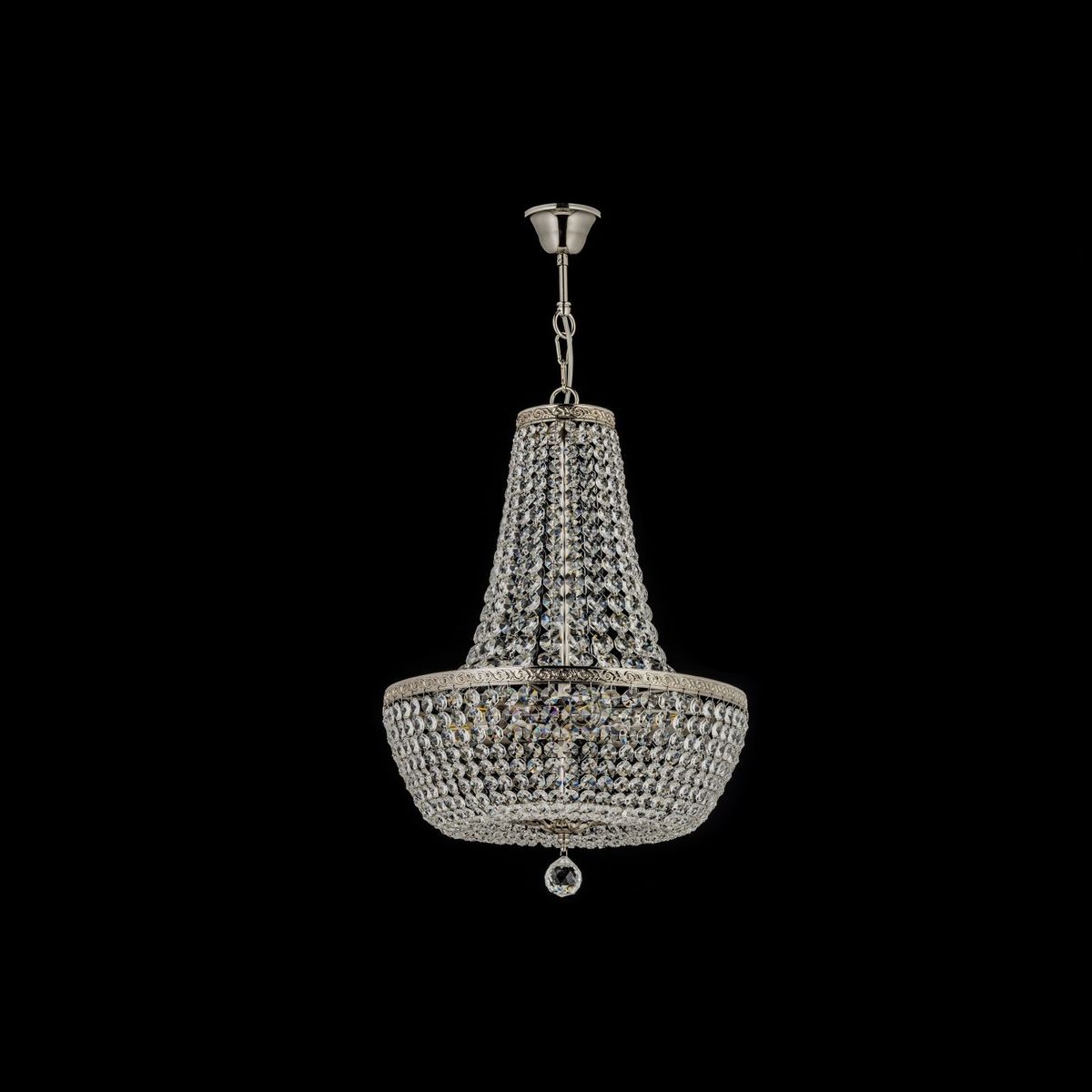 Подвесной светильник Arti Lampadari Castellana E 1.5.40.100 N от Итальянского бренда из коллекции Castellana Nickel предназначен для установки на потолок в гостиной в классиком стиле. Cветильник в форме с металлической арматурой цвета никель и плафонами из предназначен для освещения 20 м2.