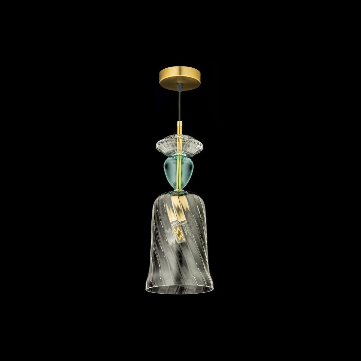 Подвесной светильник Arti Lampadari Davoli E 1.P1 CG от Итальянского бренда из коллекции Davoli предназначен для установки на потолок в кухне в стиле Арт-деко. Cветильник в форме с металлической арматурой залотого цвета и серого цвета плафонами из стекла предназначен для освещения м2.