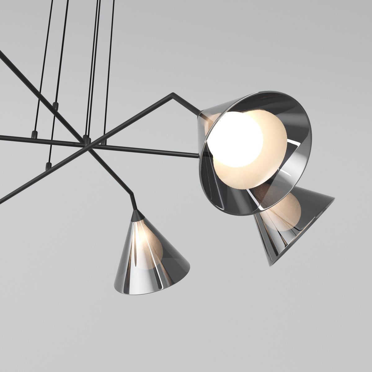 Подвесной светильник Eurosvet Enigma 70161/6 черный от Китайского бренда из коллекции Enigma предназначен для установки на потолок в гостиной в стиле Арт-деко. Cветильник в форме с металлической арматурой черного цвета и черного цвета плафонами из стекла предназначен для освещения 7 м2.